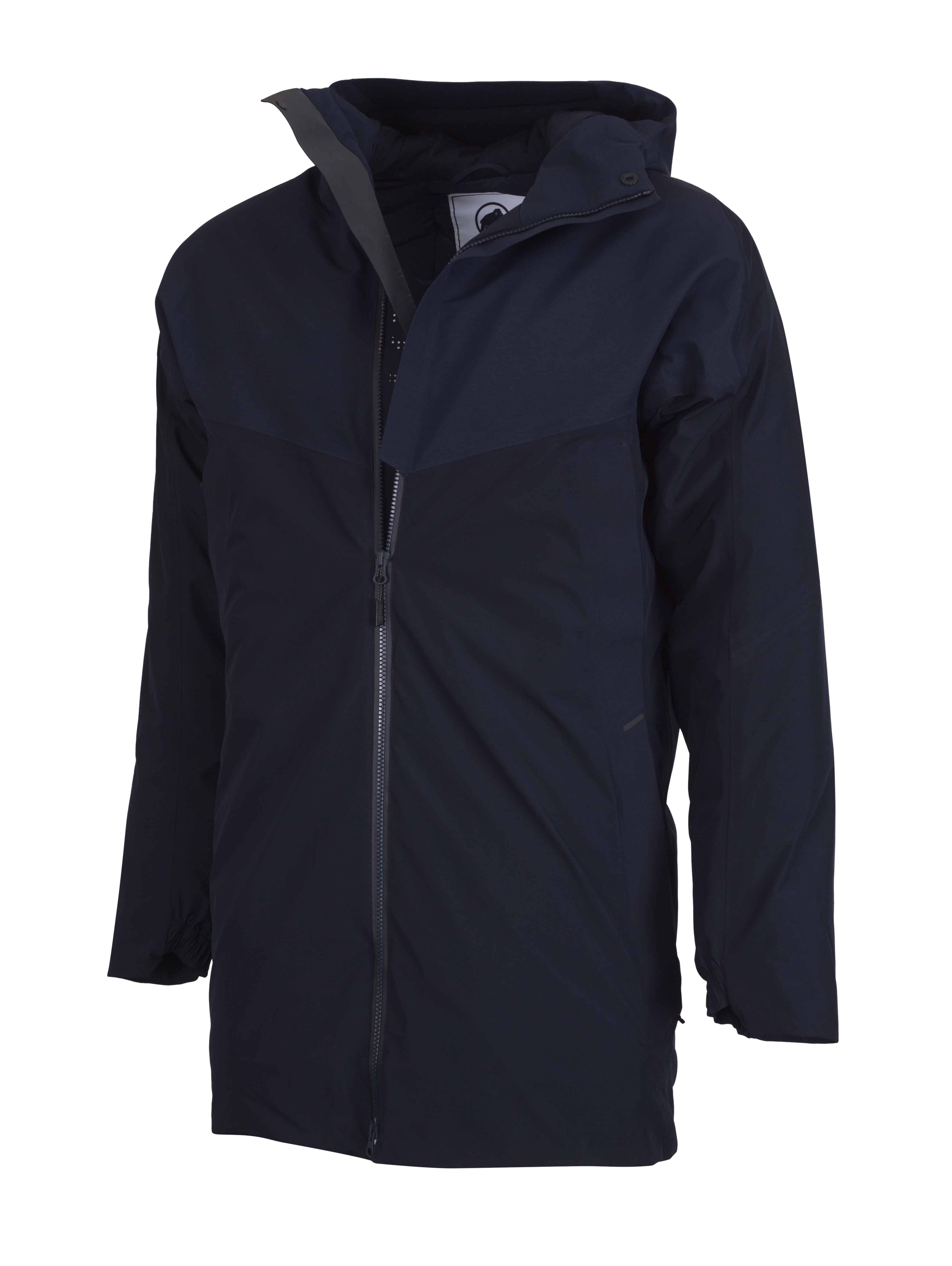 Daunenparka, Slim Fit, Wind- und wasserabweisend, Microfaser, getapte Nähte, 2-Wege-Zip, breiter Stehkragen, Kapuze mit Tunnelzug, Eingriffstaschen mit Zip, Einsätze in Kontraststoff