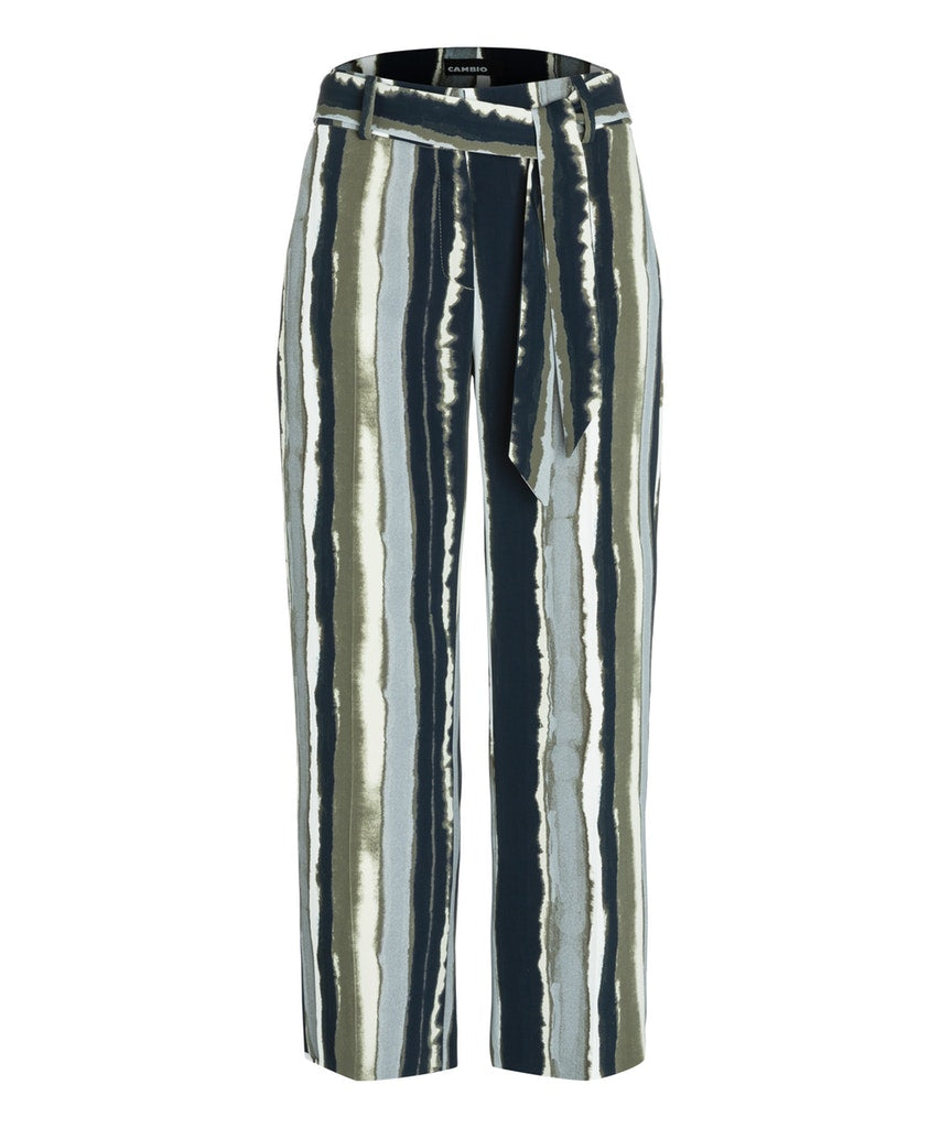Freizeithose, Weites Bein, Stoffgürtel, Muster