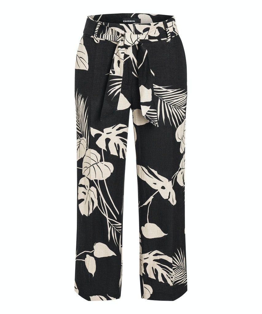 Freizeithose, Weites Bein, Stoffgürtel, Flora-Muster