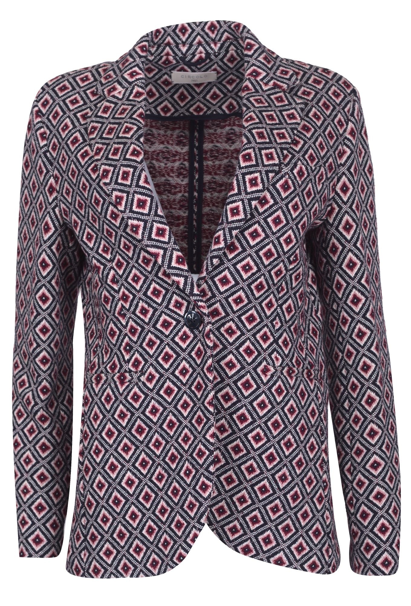 Blazer, Drei Taschen, Muster, Revers-Kragen, Ein-Knopf-Verschluss