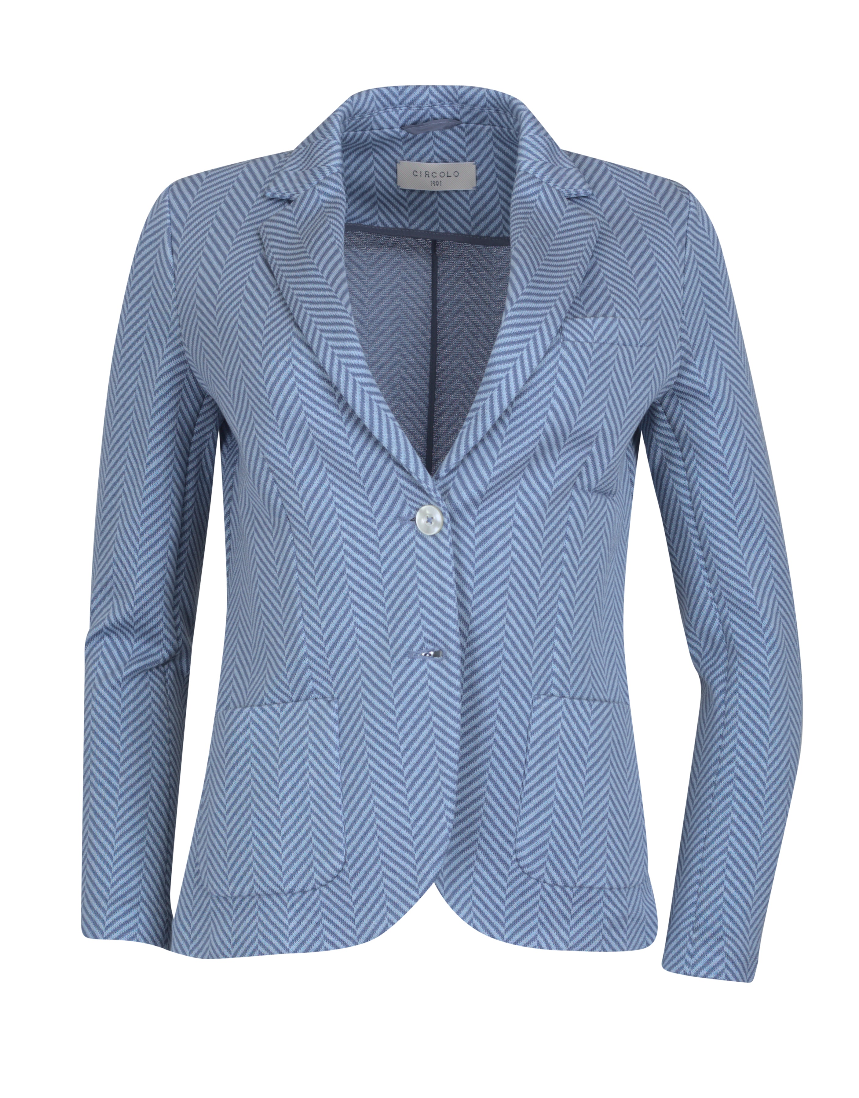 Gewebter Jersey-Stretch-Blazer, 2-Knopf, 2 aufgesetzte Taschen, Nicht gefüttert, Fischgrad