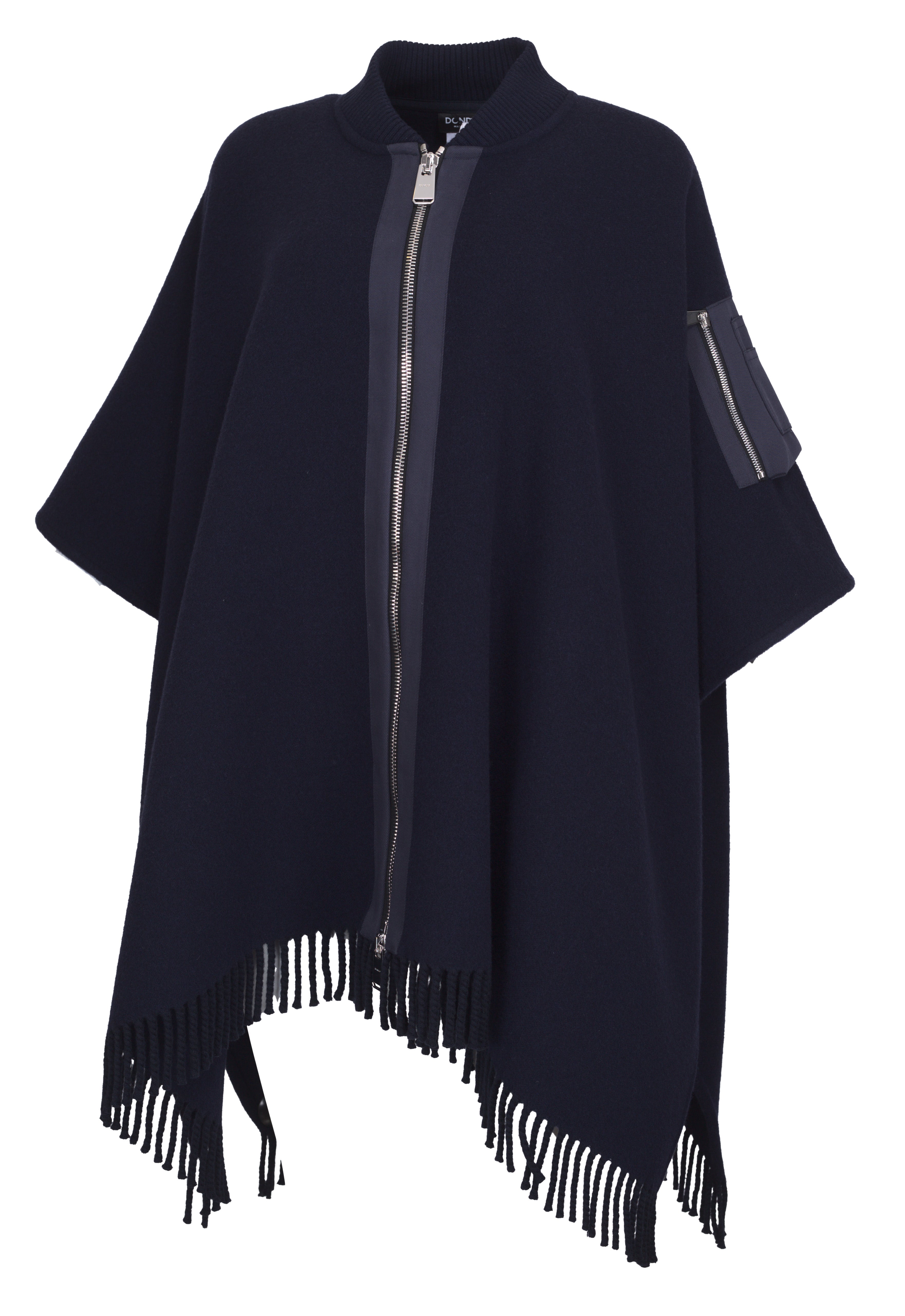 Dieser moderne Poncho in navy besticht durch seine luxuriöse Verarbeitung aus 100 % Wolle und innovative Details. Strickbündchen und ein praktischer Zweiwege-Reißverschluss verleihen dem Design eine sportlich-elegante Note, während Fransen am Saum für einen stilvollen Akzent sorgen. Die seitliche Handytasche mit Reißverschluss kombiniert Funktionalität und Ästhetik – ein zeitgemäßes Statement für modebewusste Damen.