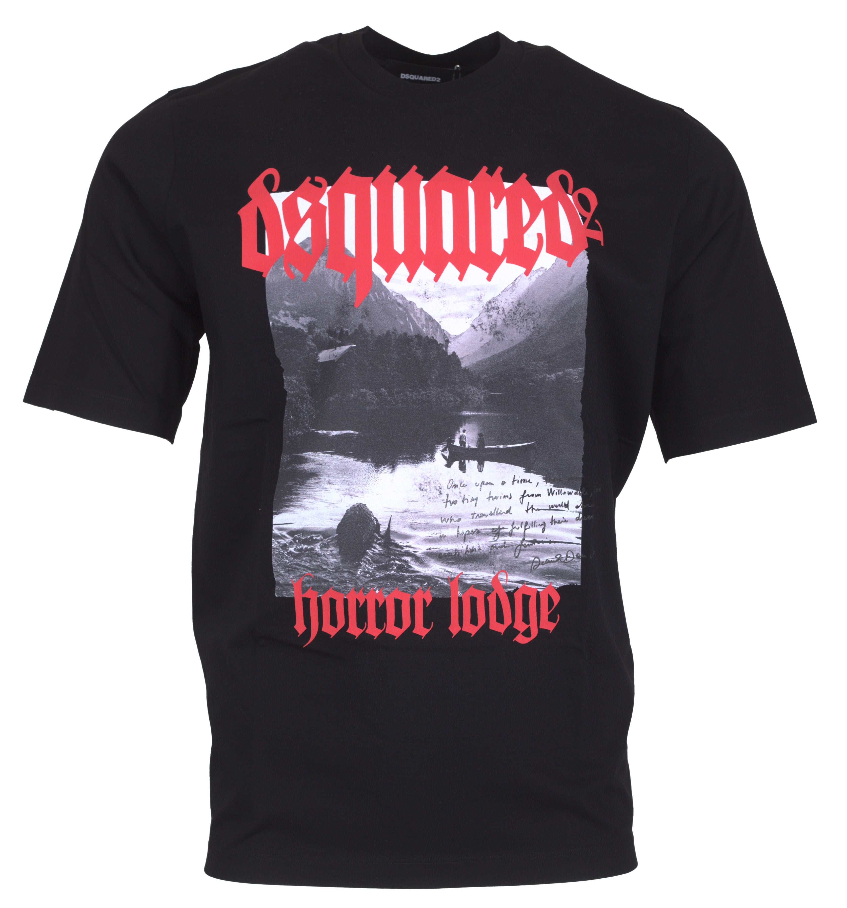 Halbarm T-Shirt, “Horror Lodge” Print, Baumwolle, schwarz