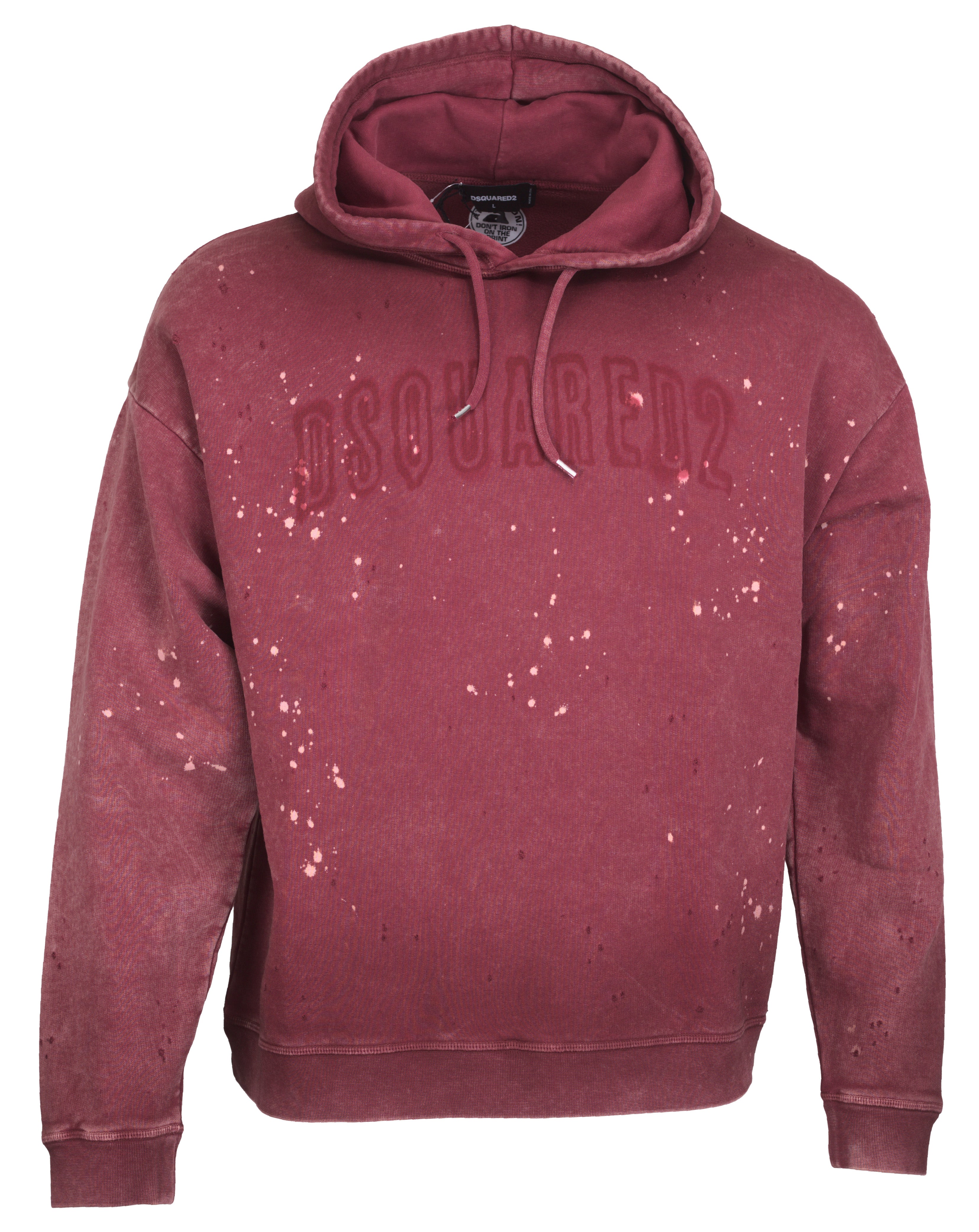 Hoodie, destroyed mit Farbspränkeln und Logo, Baumwolle, rot/vintage