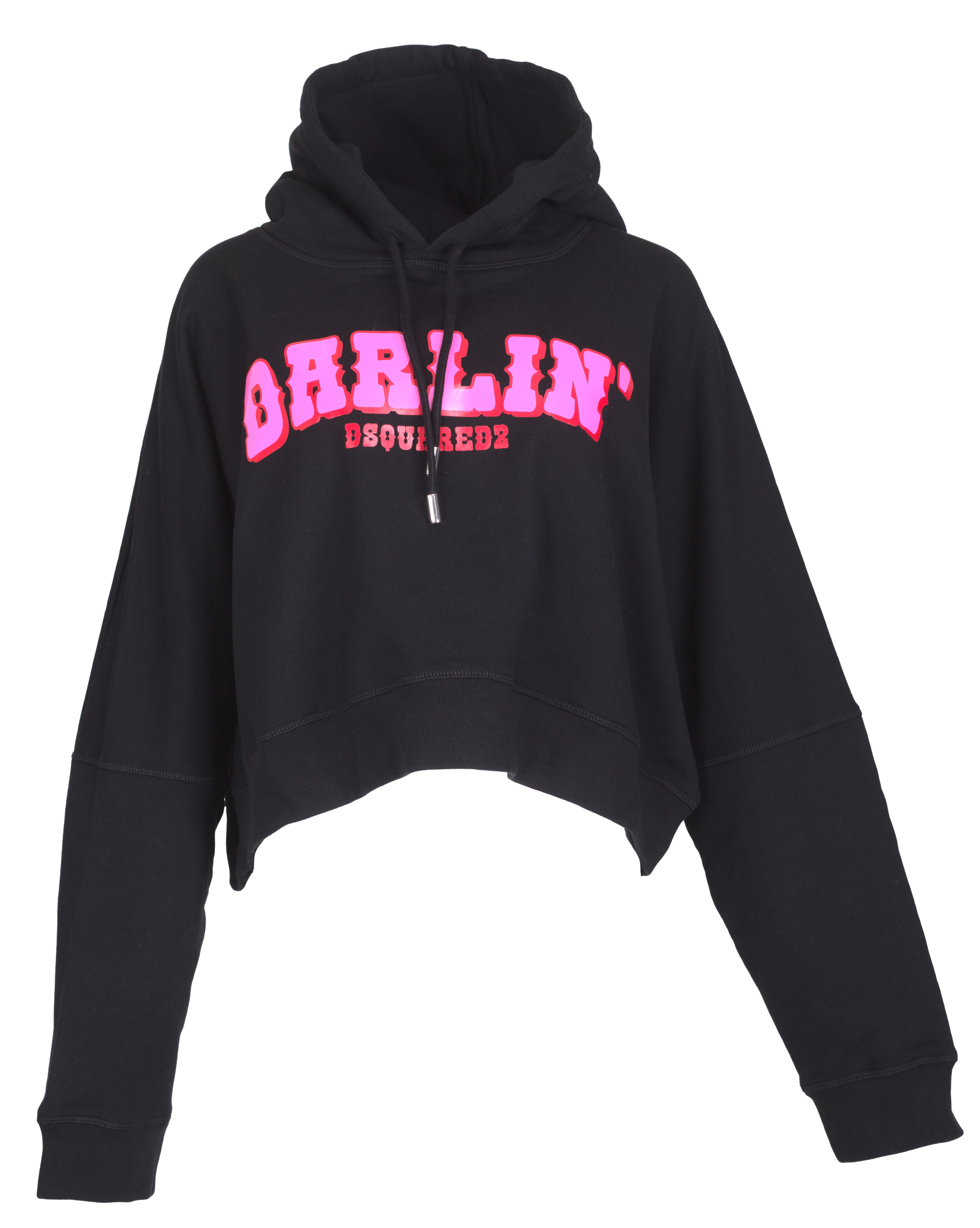 Boxie-Hoodie, oversized, DARLIN-Druck in pink, Baumwolle, schwarz