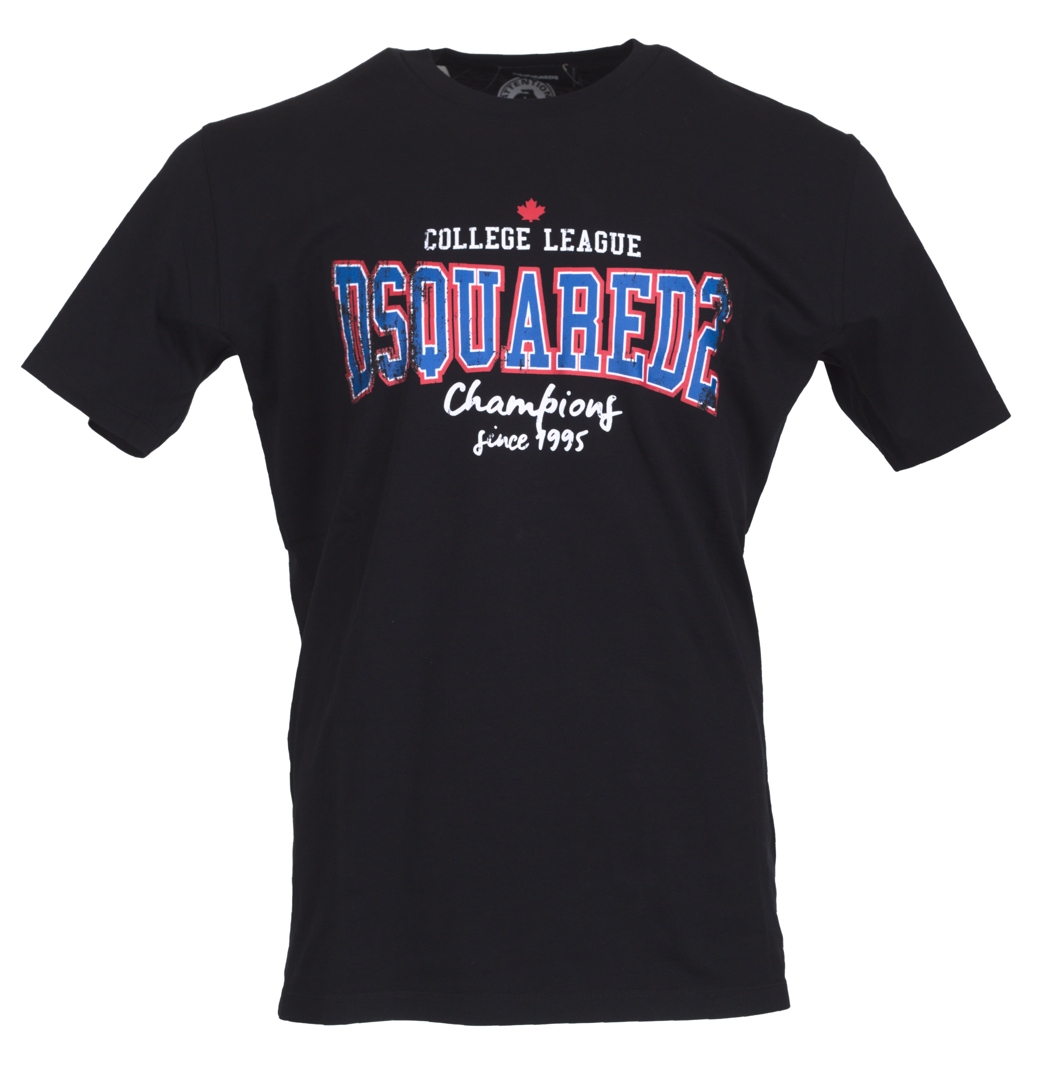 T-Shirt, Rundhals, großer Logo-Print, Baumwolle, schwarz