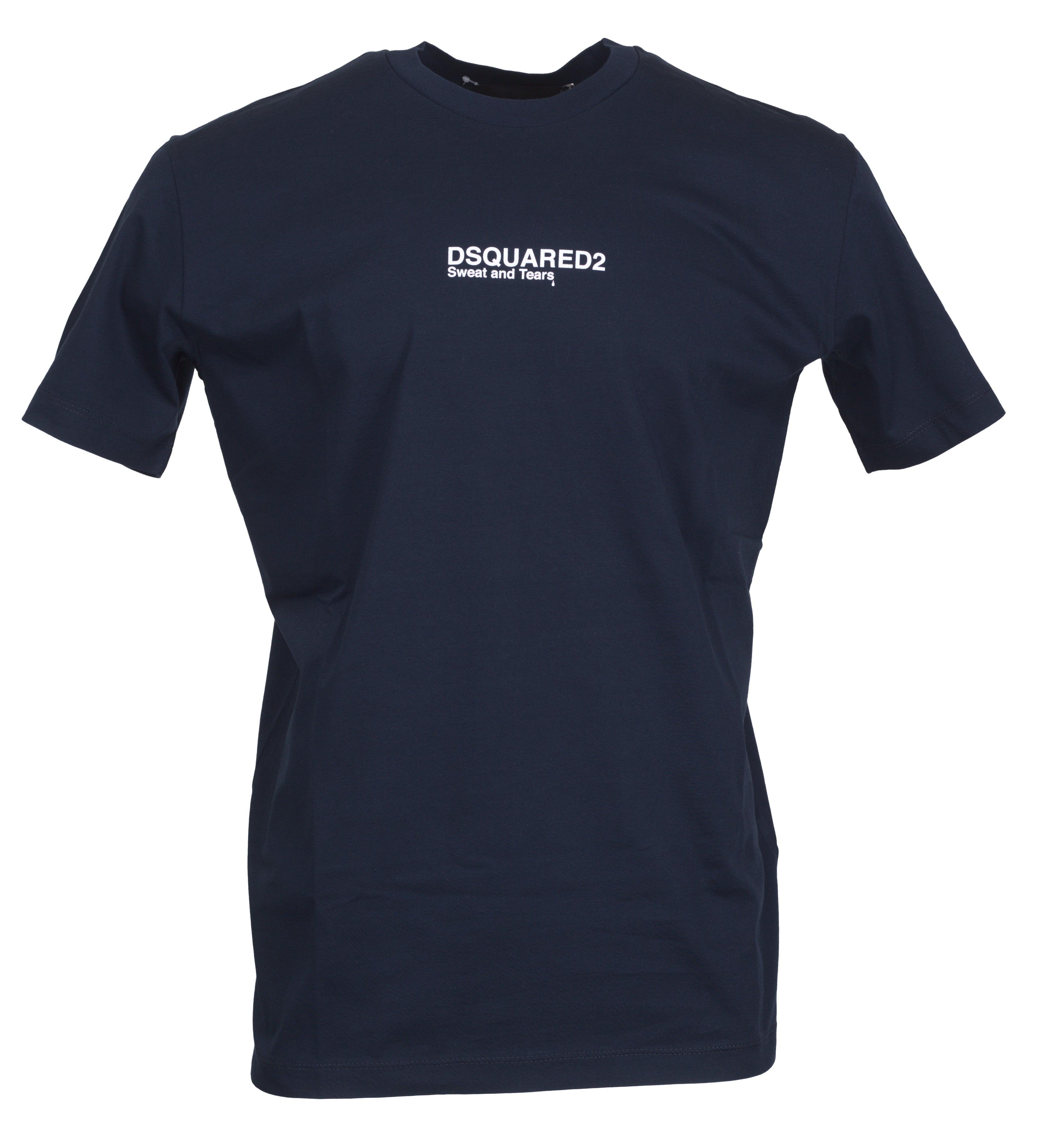 T-Shirt, Rundhals, kleiner Logo-Print, Baumwolle, navy