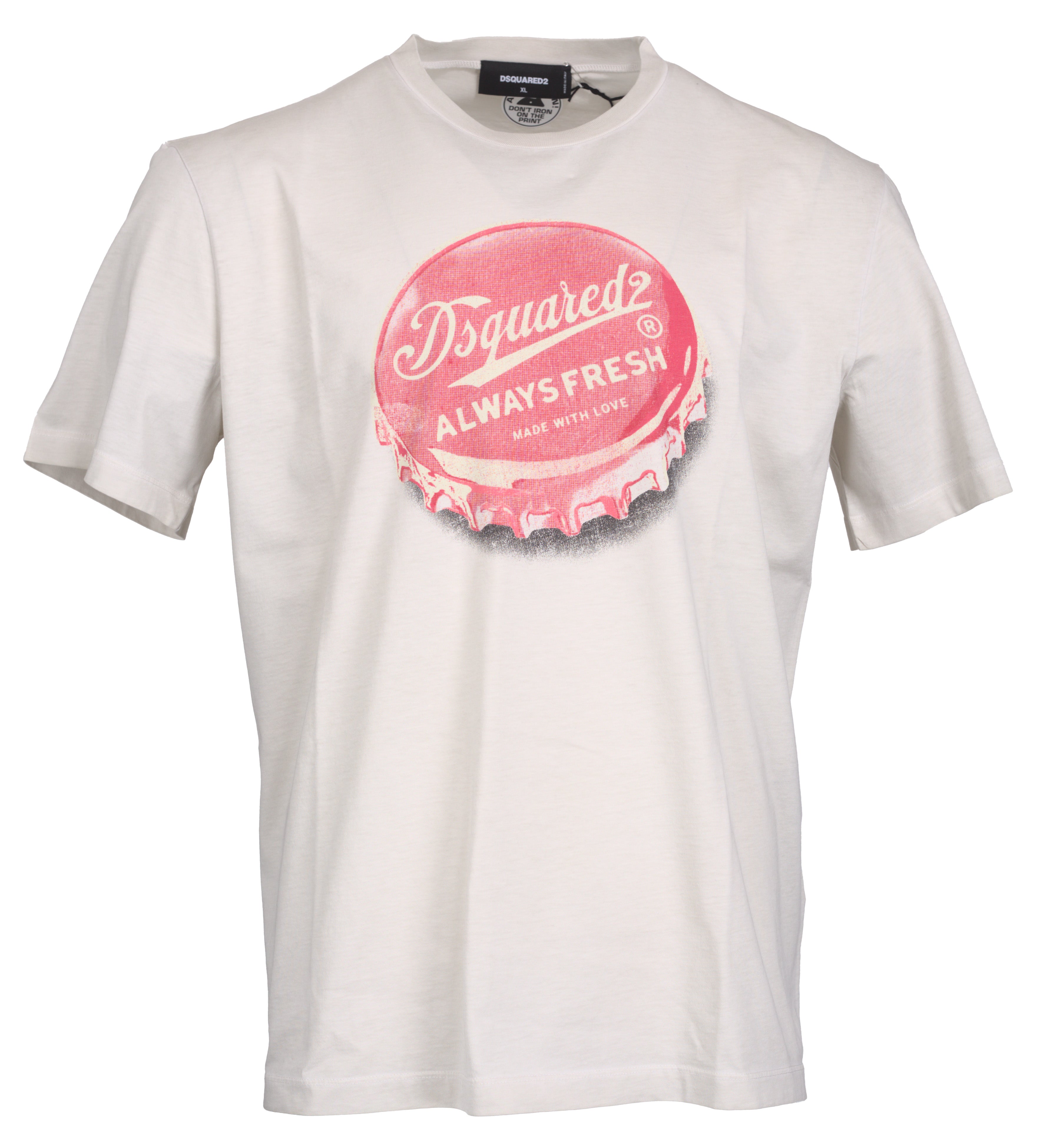 T-Shirt, Rundhals, Kronkorken-Print, Baumwolle, beige/rot
