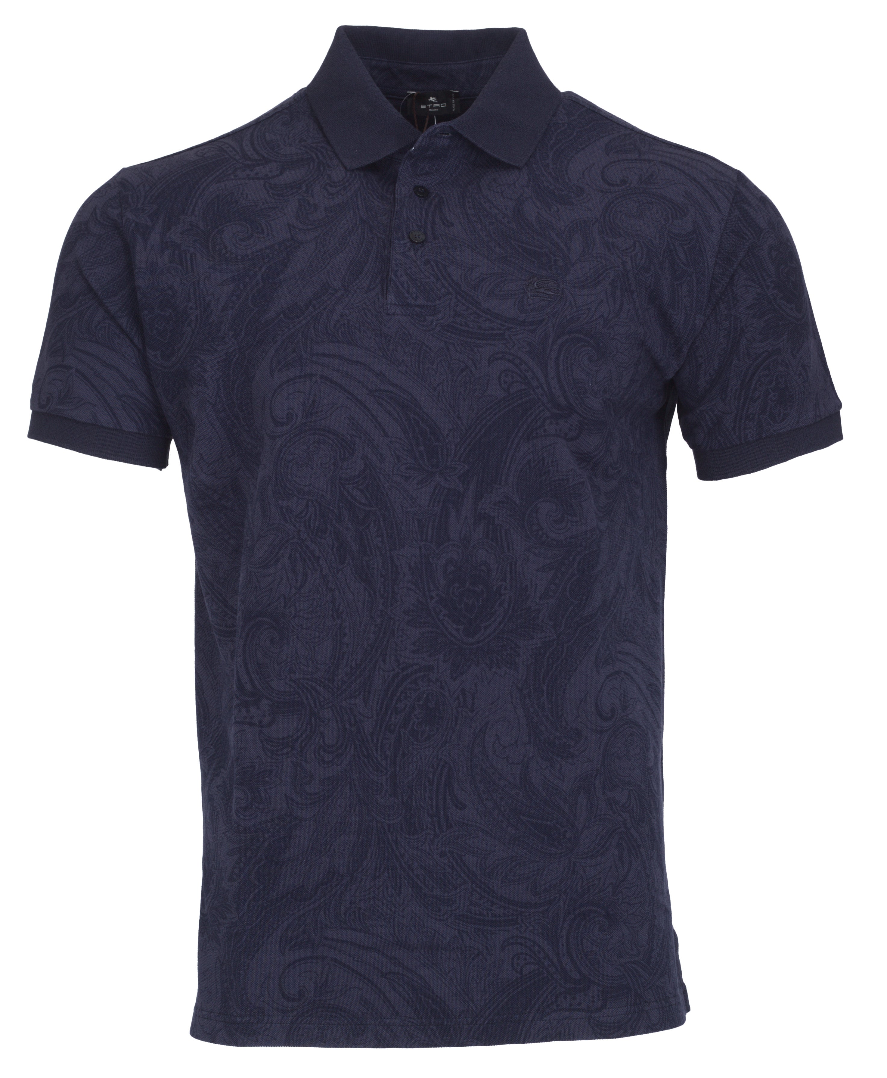 Halbarm Polo, Seitenschlitze, ton in ton Paisley-Druck, Baumwolle, blau