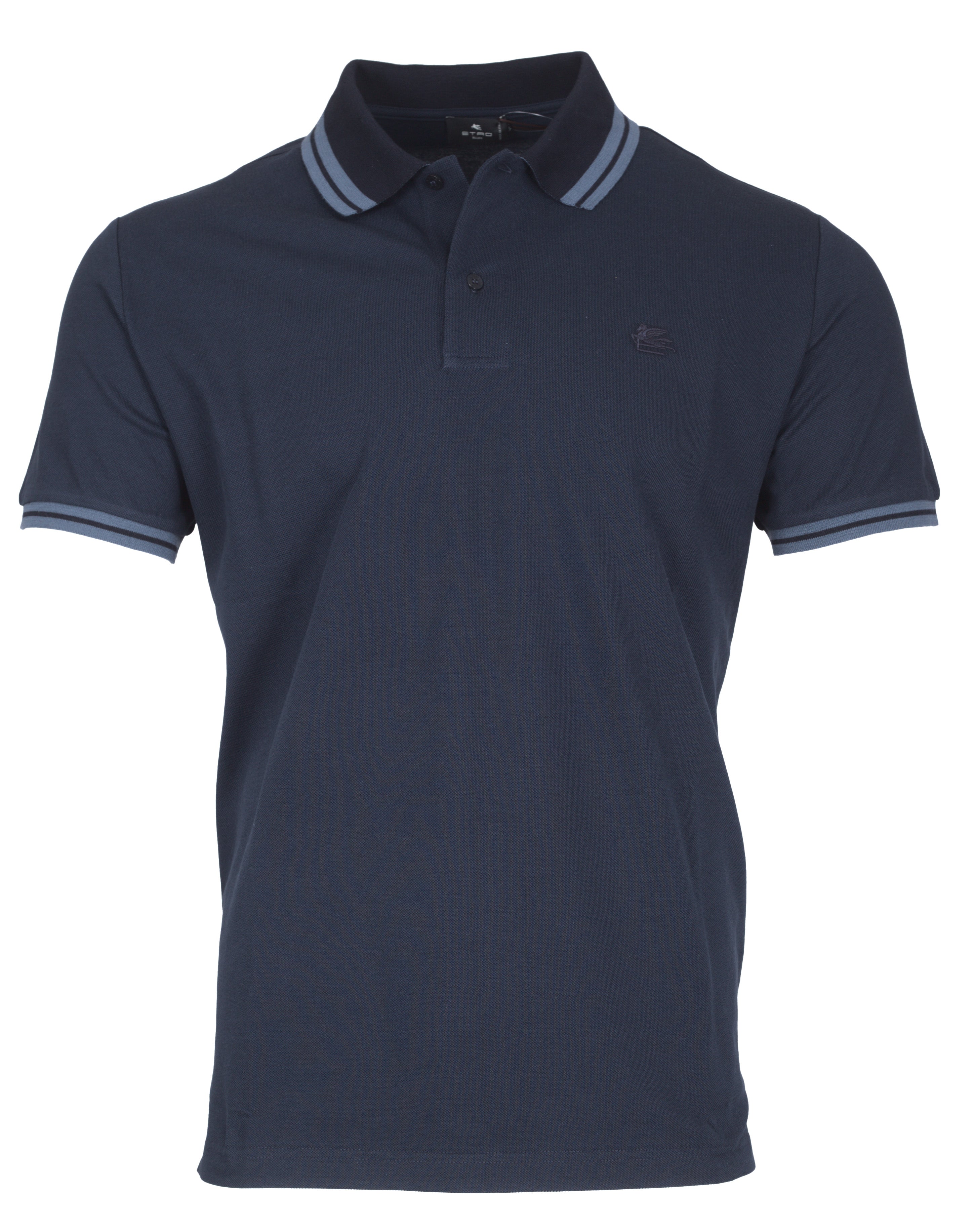 Polo-Shirt, farblich abgesetzter Streifen am Kragen und Ärmelbund, Seitenschlitz, Baumwoll-Piquet, navy