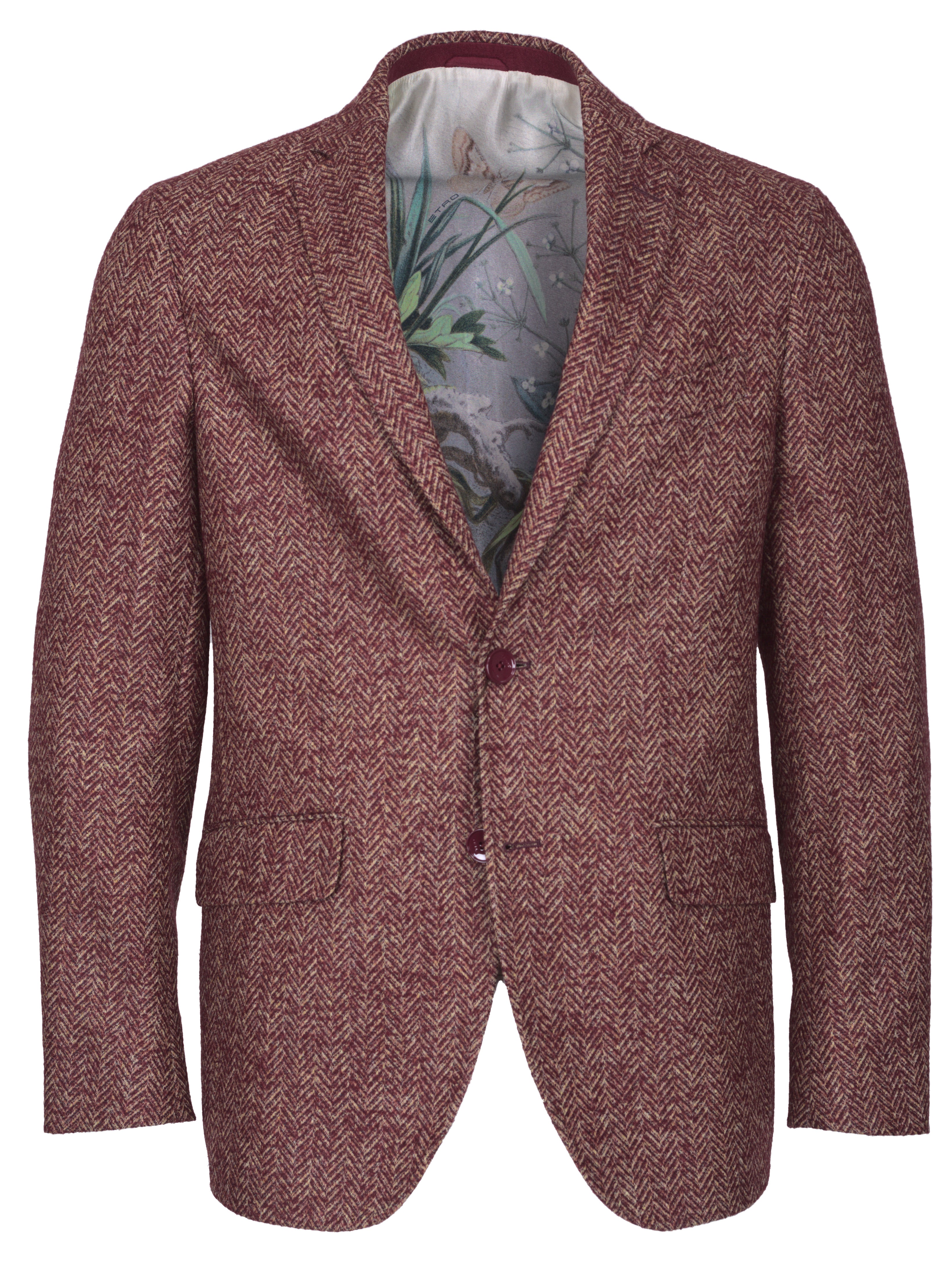 Sakko, Revers-Kragen, Drei Taschen, Zwei Innentaschen, Fischgräten-Muster, Auffälliges Futter Muster