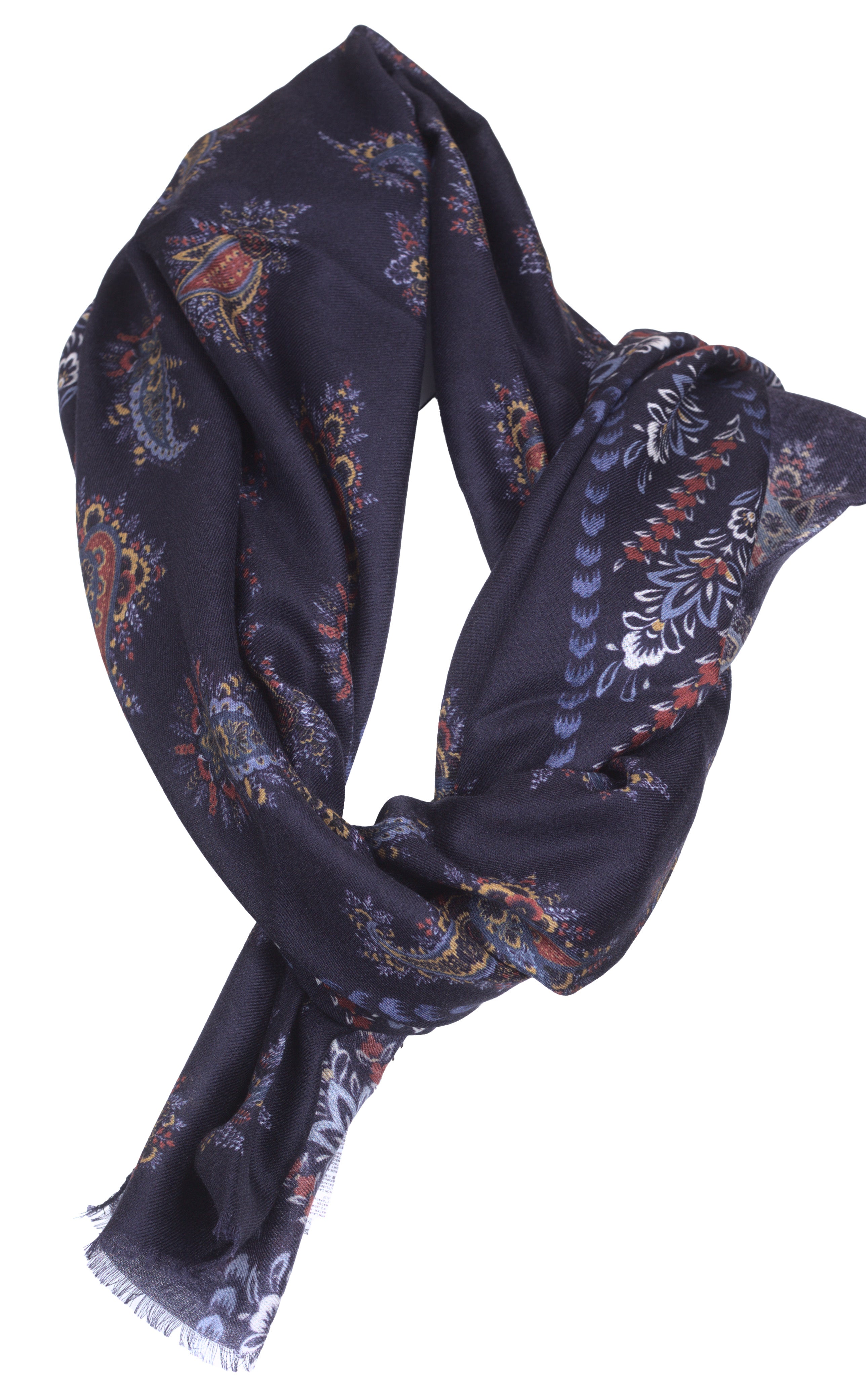 gewebter Schal, Pacely-Druck, L: 190 B: 65, Wolle/Cashmere/Seide, navy/ecru/rot