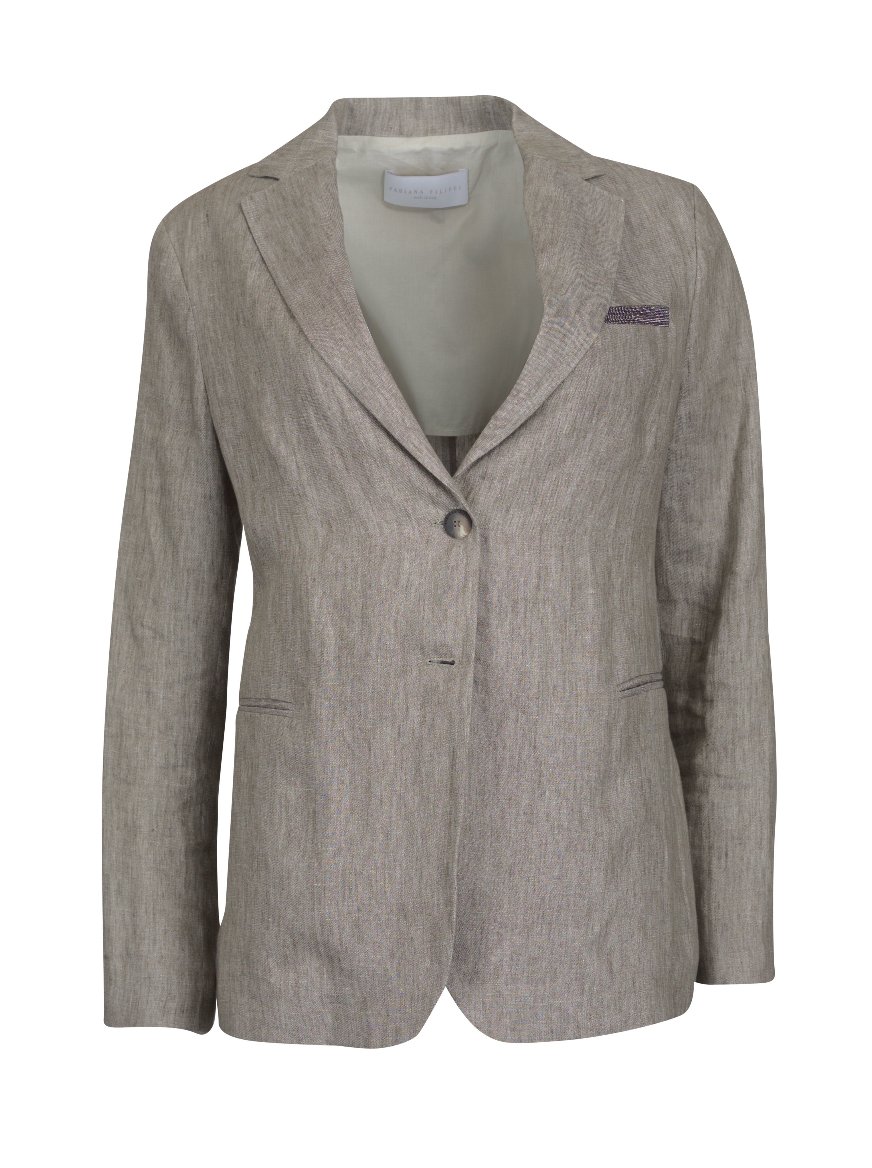 Dieser halbgefütterte Leinenblazer von Fabiana Filippi präsentiert sich im angesagten Oversize-Schnitt, der für ein modernes, entspanntes Tragegefühl sorgt. Zwei praktische Schlitze und Stecktaschen verleihen ihm Funktionalität, während die kunstvoll gestaltete Brusttasche mit edlen Details einen luxuriösen Akzent setzt. Das natürliche Leinenmaterial sorgt für angenehme Atmungsaktivität und eine leichte Struktur, die perfekt zu der stilvollen, aber dennoch unkomplizierten Optik passt. Dieser Blazer ist sowohl im Büro als auch in der Freizeit ein vielseitiger Begleiter und lässt sich ideal zu vielen Outfits kombinieren.