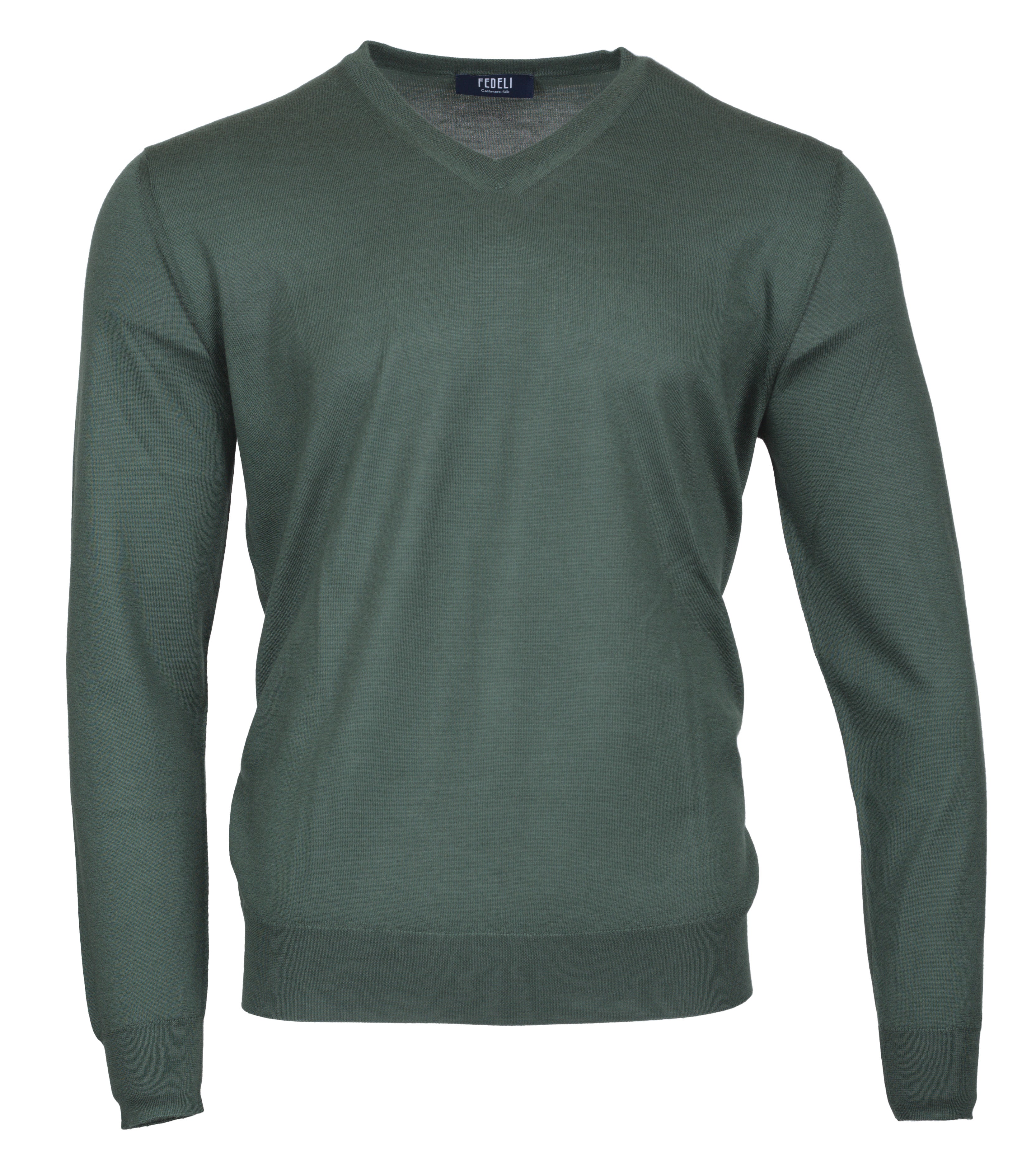 Pullover, V-Ausschnitt, Gerippt am Ausschnitt, Saum und Ärmelenden FarbegrünMaterialCashmere und SeideSuchfarbegrün
