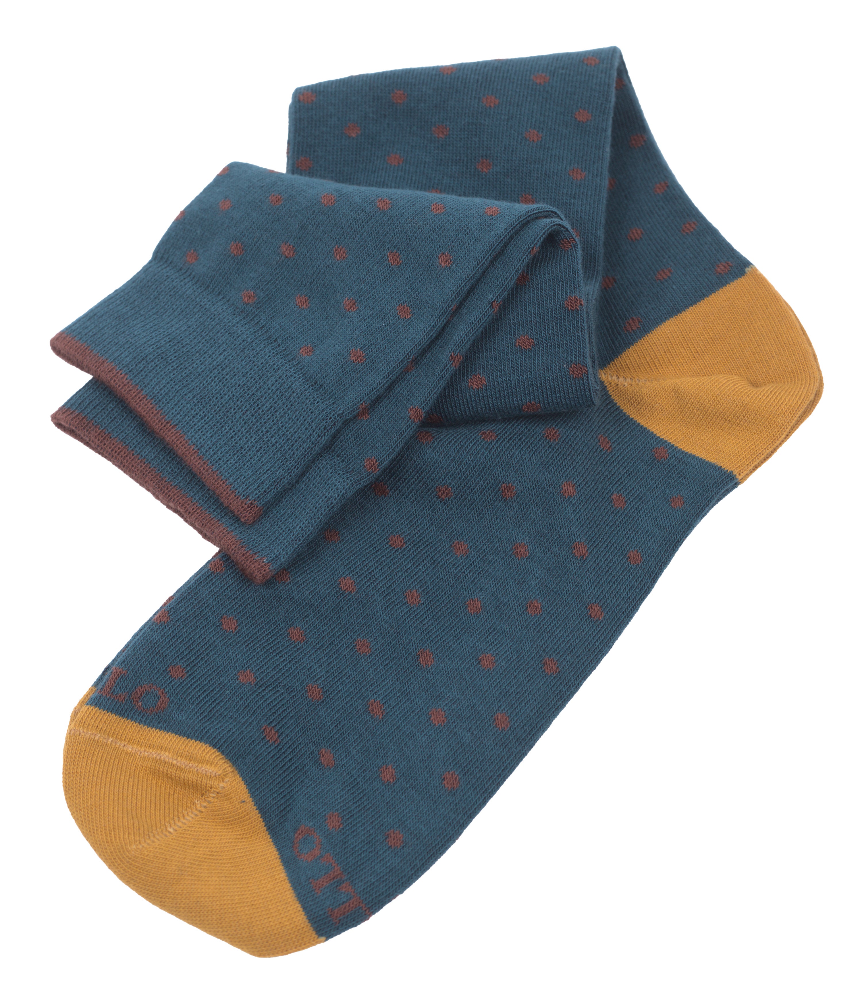Kniestrumpf, mit farblich abgesetzter Spitze, Tupfen, Baumwolle/Polyamid, Petrol/Senf/Kemmel
