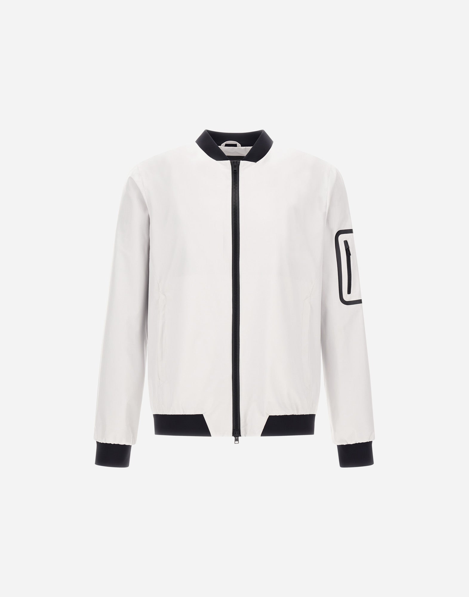 Diese weiße Bomberjacke von Herno ist eine stilvolle Neuinterpretation eines Klassikers und verbindet sportliches Design mit moderner Raffinesse. Der klare Schnitt wird durch markante schwarze Kontraste an Kragen, Bündchen und Saum stilvoll unterstrichen, während das technische Gewebe der Jacke nicht nur für einen hochwertigen Look, sondern auch für Funktionalität im Alltag sorgt.
