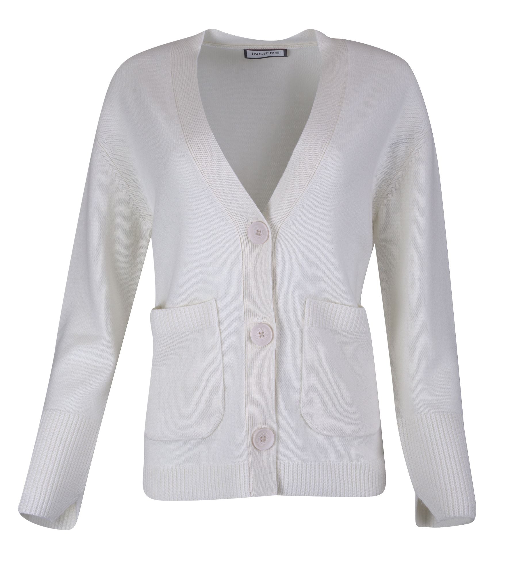 Strickjacke, Zwei Taschen, Knopfverschluss, V-Ausschnitt, Gerippt an den Taschen, Saum und Ärmelenden