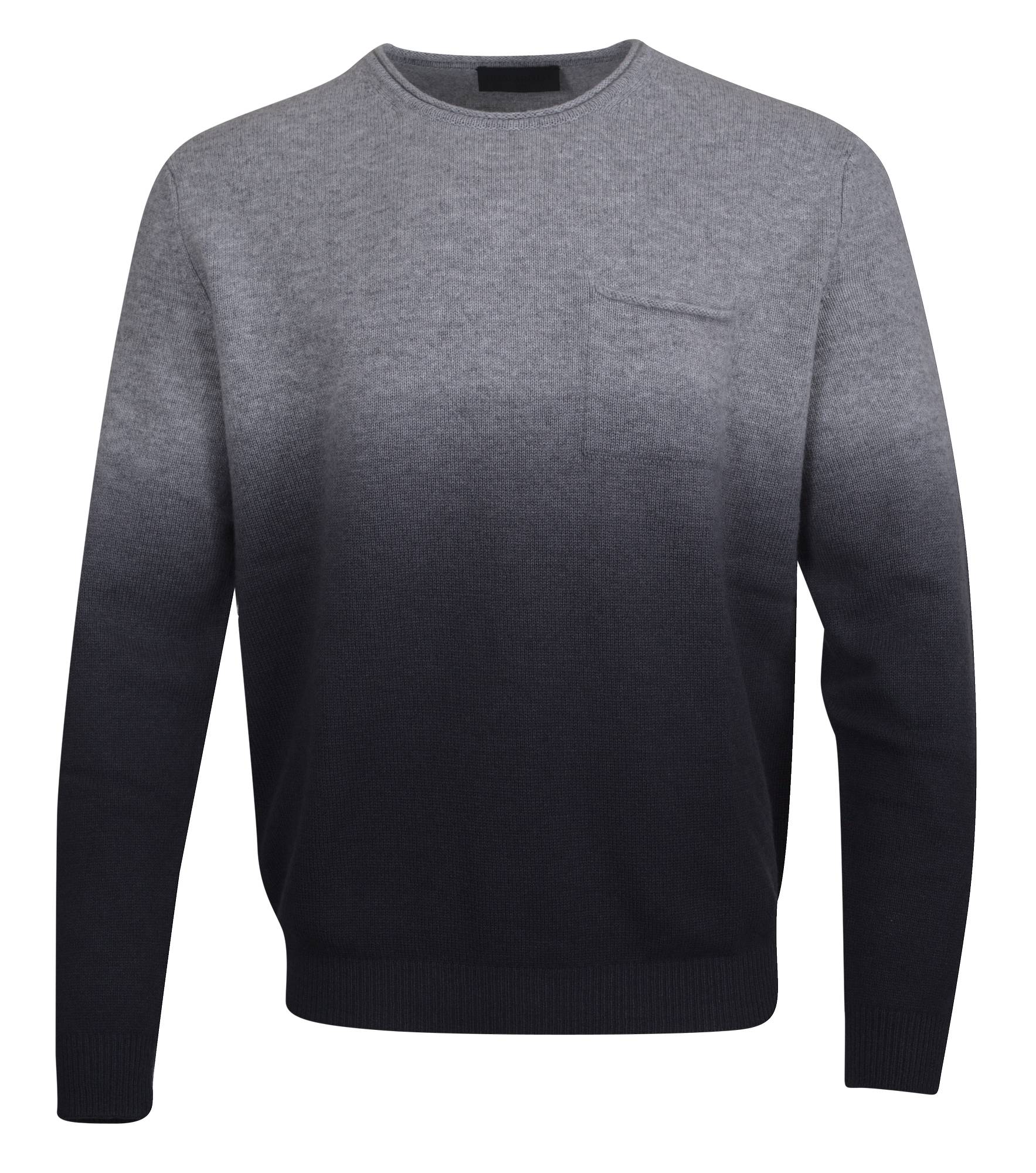 Strickpullover, Runder-Ausschnitt, Eine Taschen, Ombré-Style, Gerippt am Saum und Ärmelenden