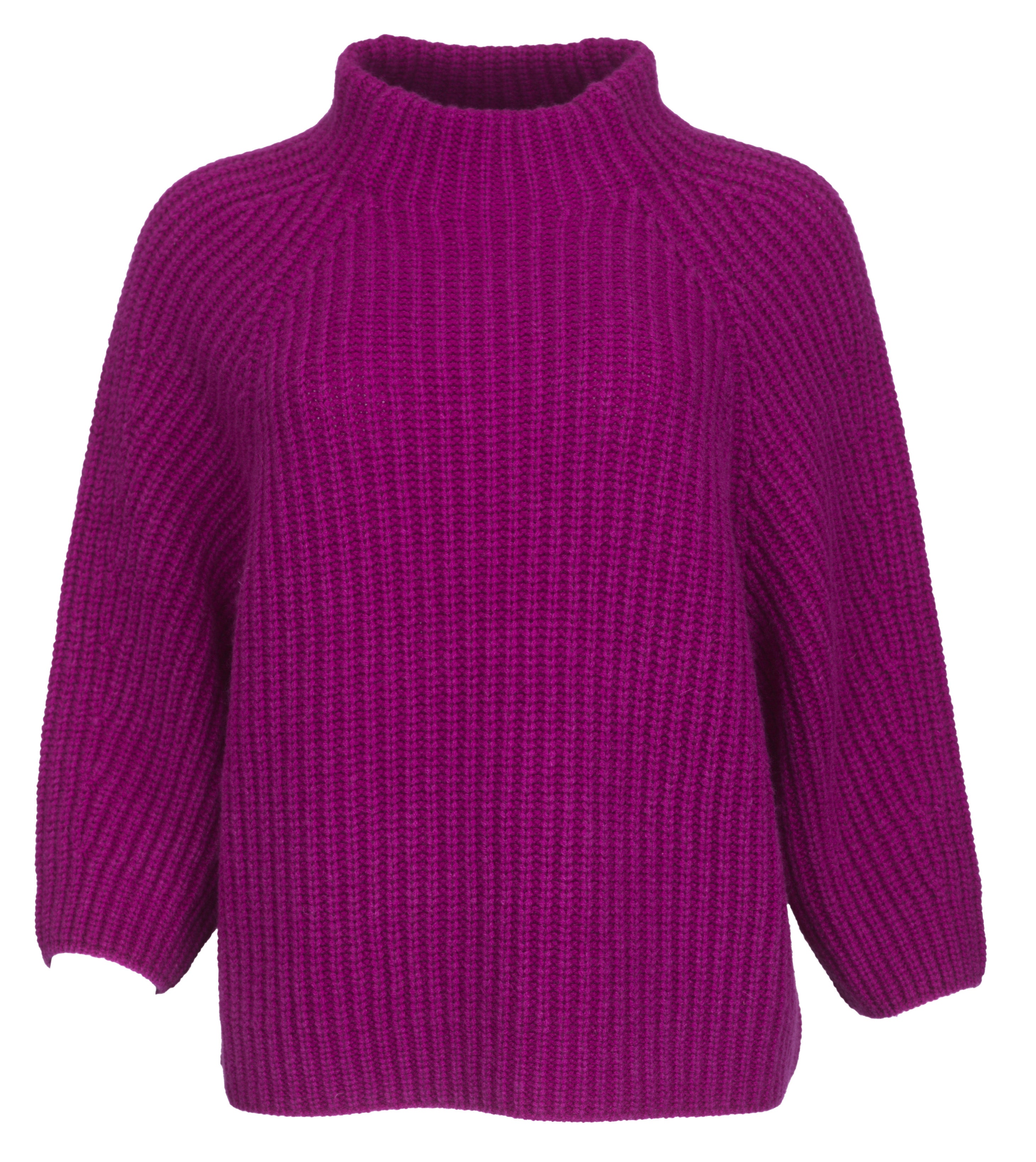 Dieser Stehkragen-Pullover von Iris von Arnim aus stonewashed Cashmere beeindruckt mit seiner kastigen, modernen Silhouette und luxuriösen Verarbeitung. Der markante Patentstrick in der ausdrucksstarken Farbe Cassis verleiht dem Design Tiefe und Struktur. Mit 3/4-Ärmeln und einem legeren Schnitt verbindet der Pullover Komfort mit zeitgemäßer Eleganz. Ein Statement-Piece für anspruchsvolle Looks.