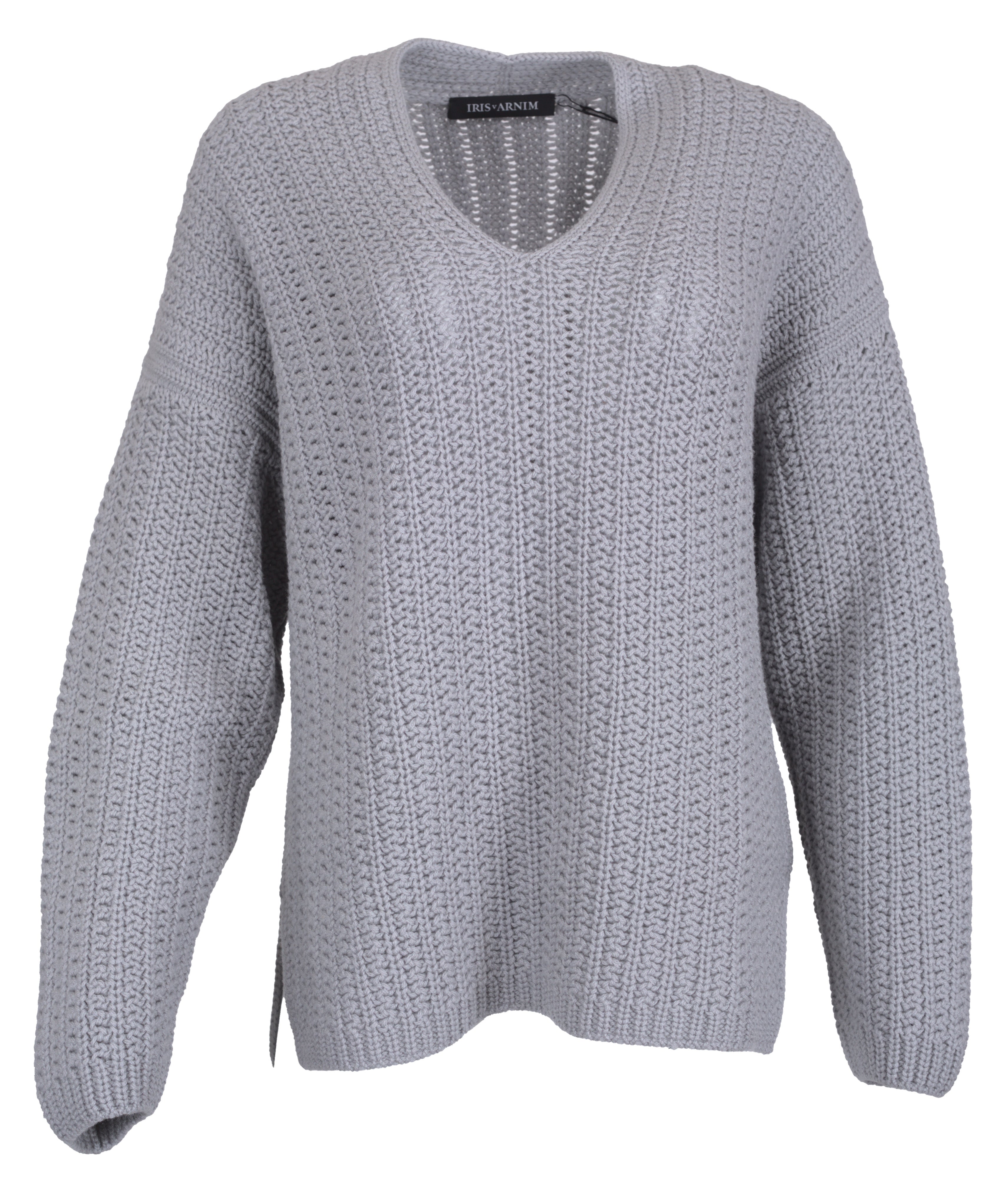 Gerader V-Pulli, Seitenschlitze, ajour-Muster, stone washed cashmere, chrome