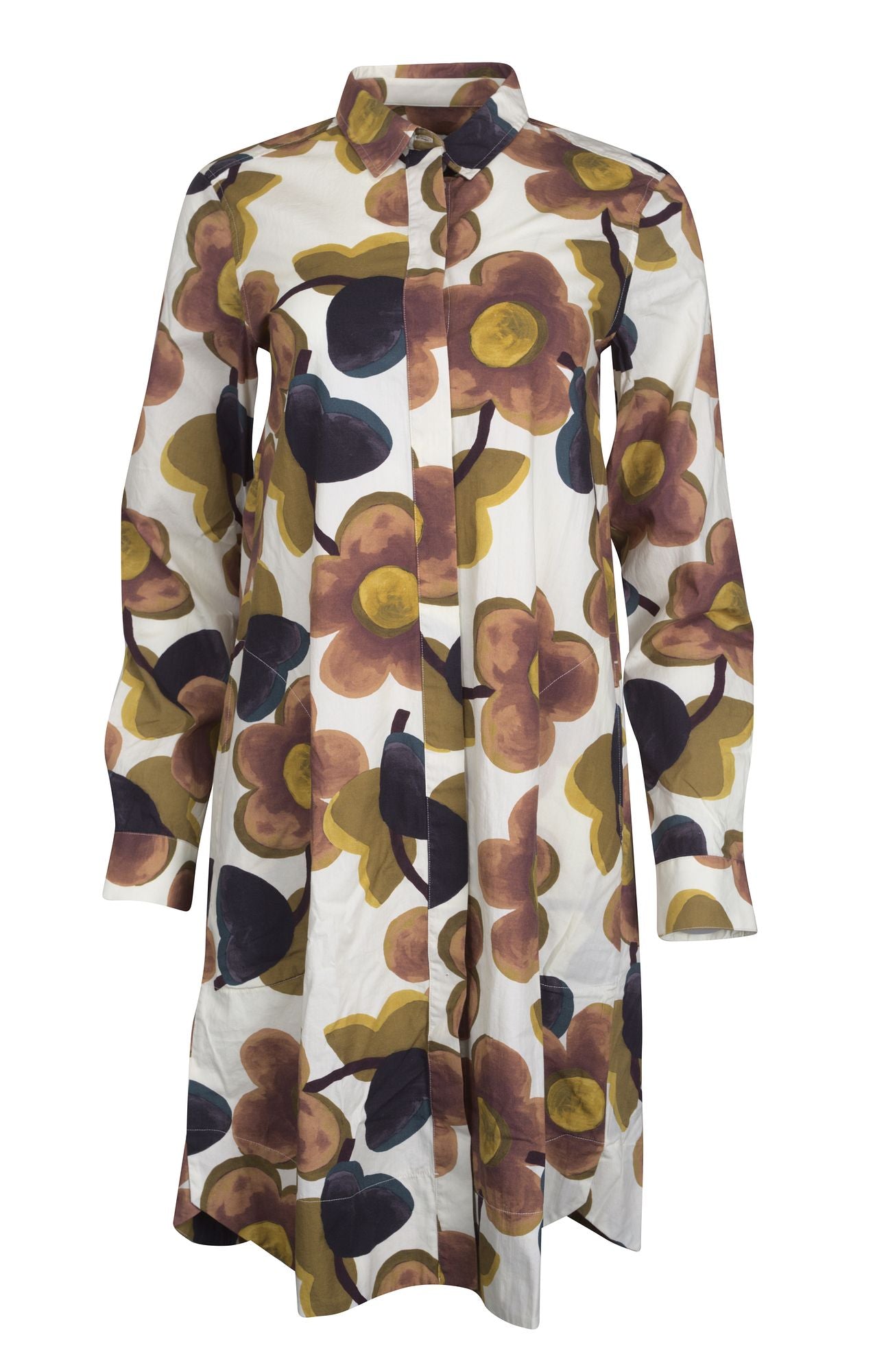 Bluse, Langer Schnitt, Schmale Passform, Zwei seitliche Taschen, Blumen-Muster, Spitzkragen, Bügelfalte am Rücken