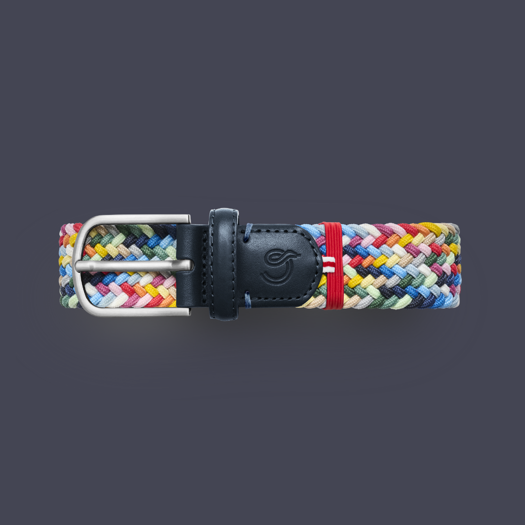 Der Gürtel San Francisco von La Boucle ist ein echter Eyecatcher: Mit seinem farbenfrohen, elastischen Flechtmuster bringt er nicht nur Farbe in jedes Outfit, sondern passt sich dank Stretch-Material auch perfekt der Körperform an – ganz ohne klassische Lochung. Das Modell steht für stilvolle Vielseitigkeit und vereint urbanes Design mit maximalem Komfort. Die hochwertigen Lederapplikationen in Marineblau sorgen für Stabilität und einen eleganten Kontrast zur bunten Struktur. Ob zu Jeans, Chinos oder Shorts – dieser Gürtel ist die perfekte Wahl für moderne Männer (und Frauen), die Wert auf Design, Funktionalität und Individualität legen. Ein echtes Must-have für stilbewusste Abenteurer.