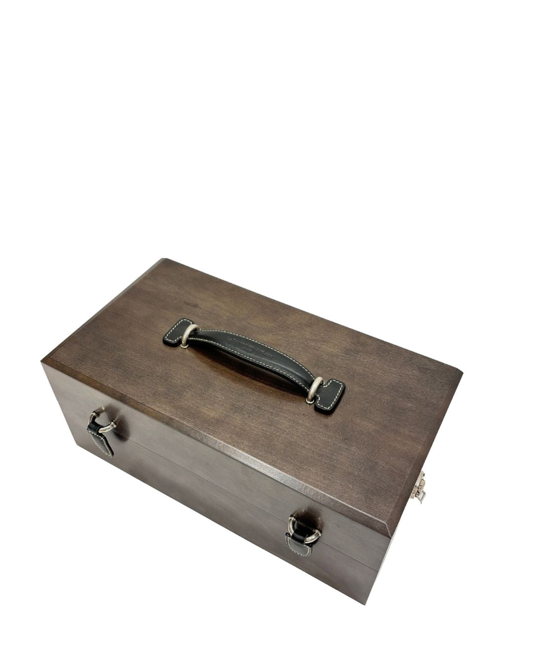 Der exklusive Schuhputzkasten von La Cordonnerie vereint Funktionalität und Eleganz für die anspruchsvolle Schuhpflege. In einem edlen Holzkasten mit Tragegriff enthalten, bietet das Set eine umfassende Auswahl hochwertiger Pflegeprodukte: Feine Schuhcremes in verschiedenen Farben, Glanz- und Auftragbürsten mit Echtholzgriff, ein weiches Poliertuch sowie ein Schuhlöffel aus Metall.