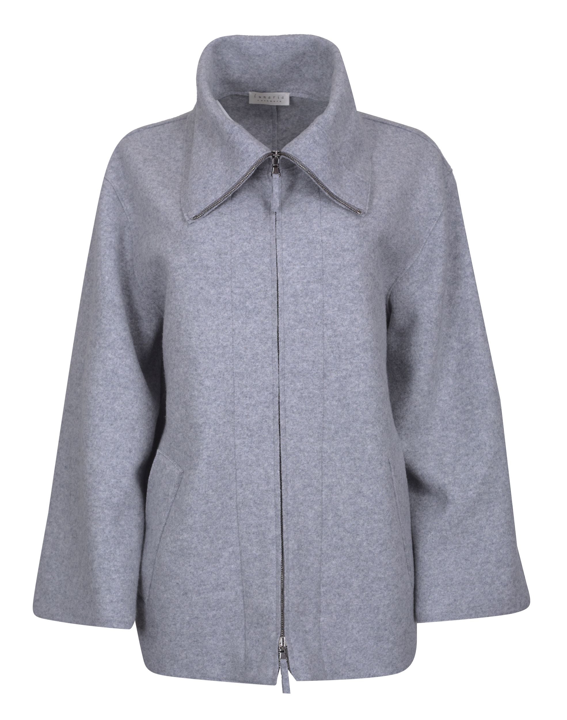 Gewalkte Cashmere-Jacke, Zwei-Wege-Reißverschluss, Breiter Kragen, Zwei Taschen, Zwei Innentaschen