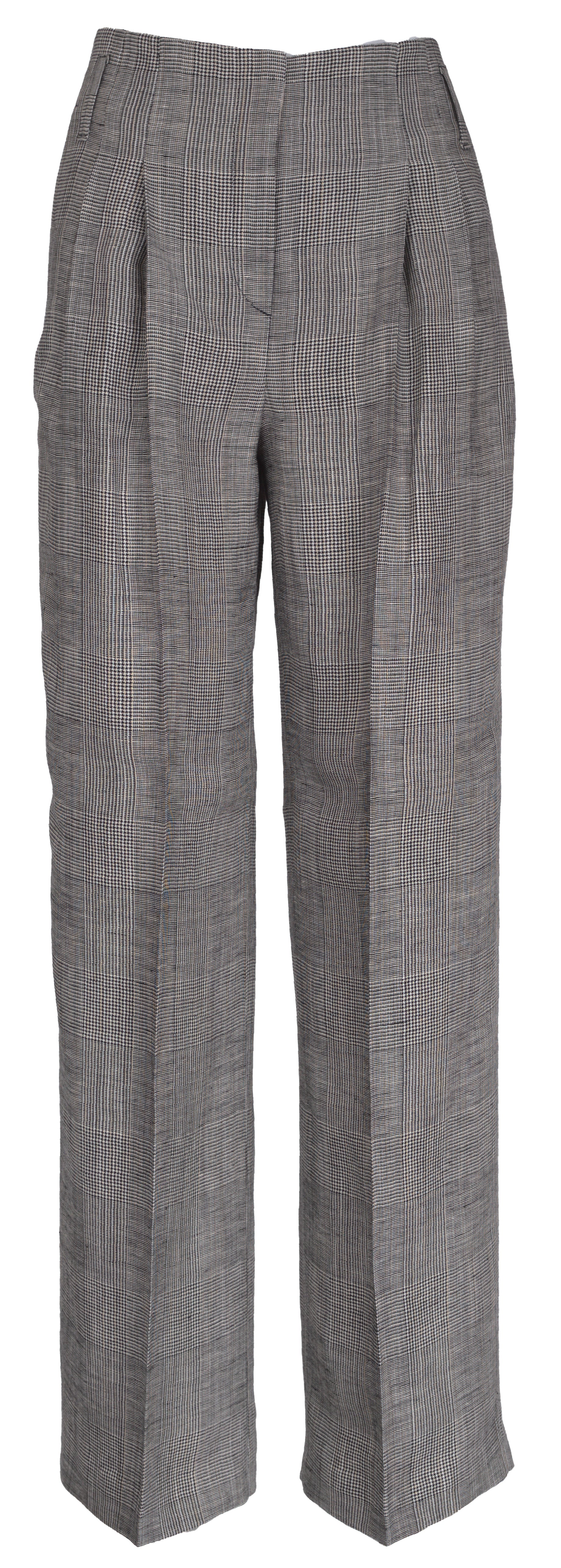 Palazzo-Hose, Gencheck-Design, seitliche Eingrifftaschen, paspel Gesäßtaschen, Bundfalte, breite Gürtelschlaufen, leinen Mix, schwarz/weiß