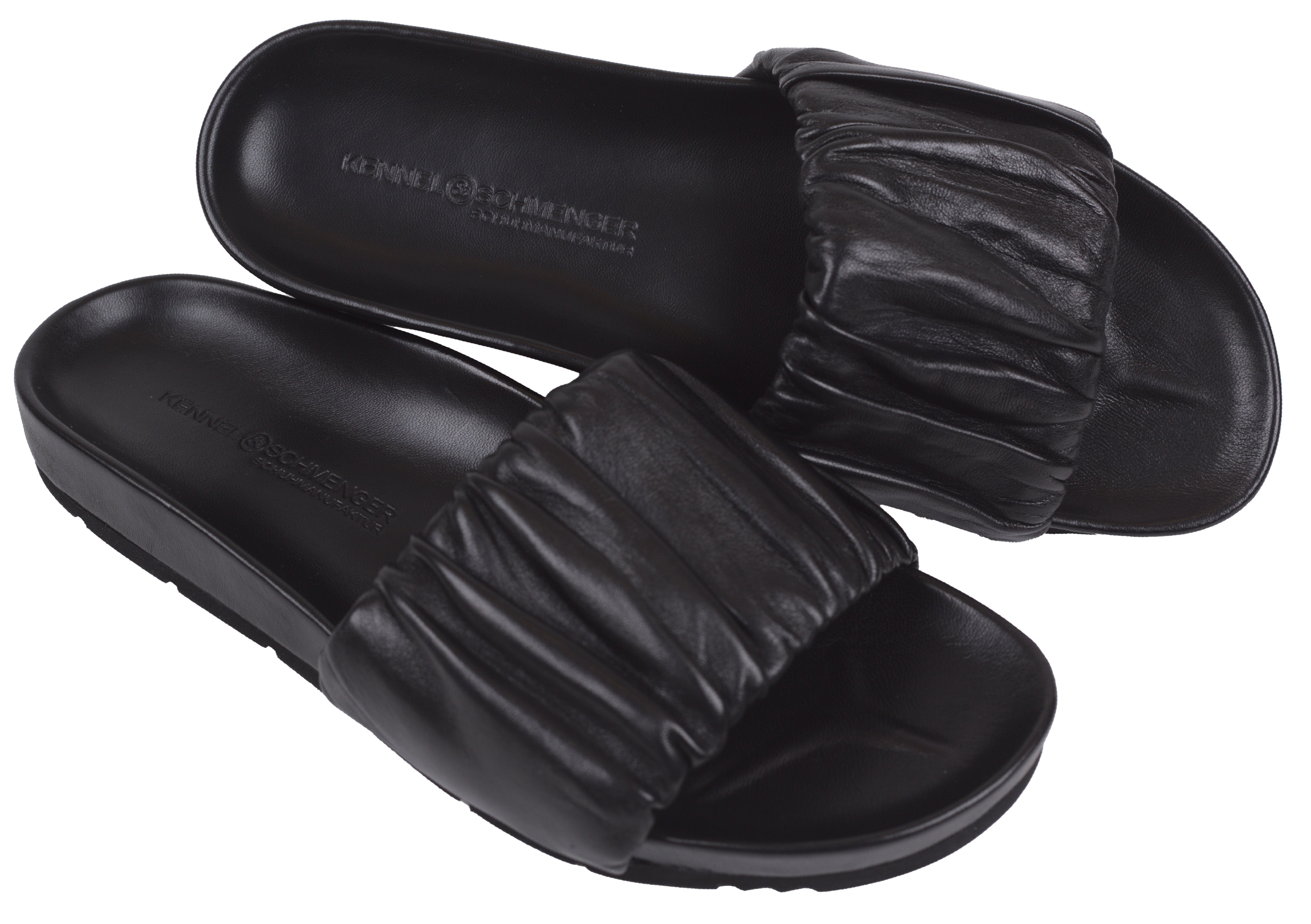 Pantoletten, Nubukleder, breiter gepolsterter Riemen, ausgearbeitetes Fußbett, schwarz