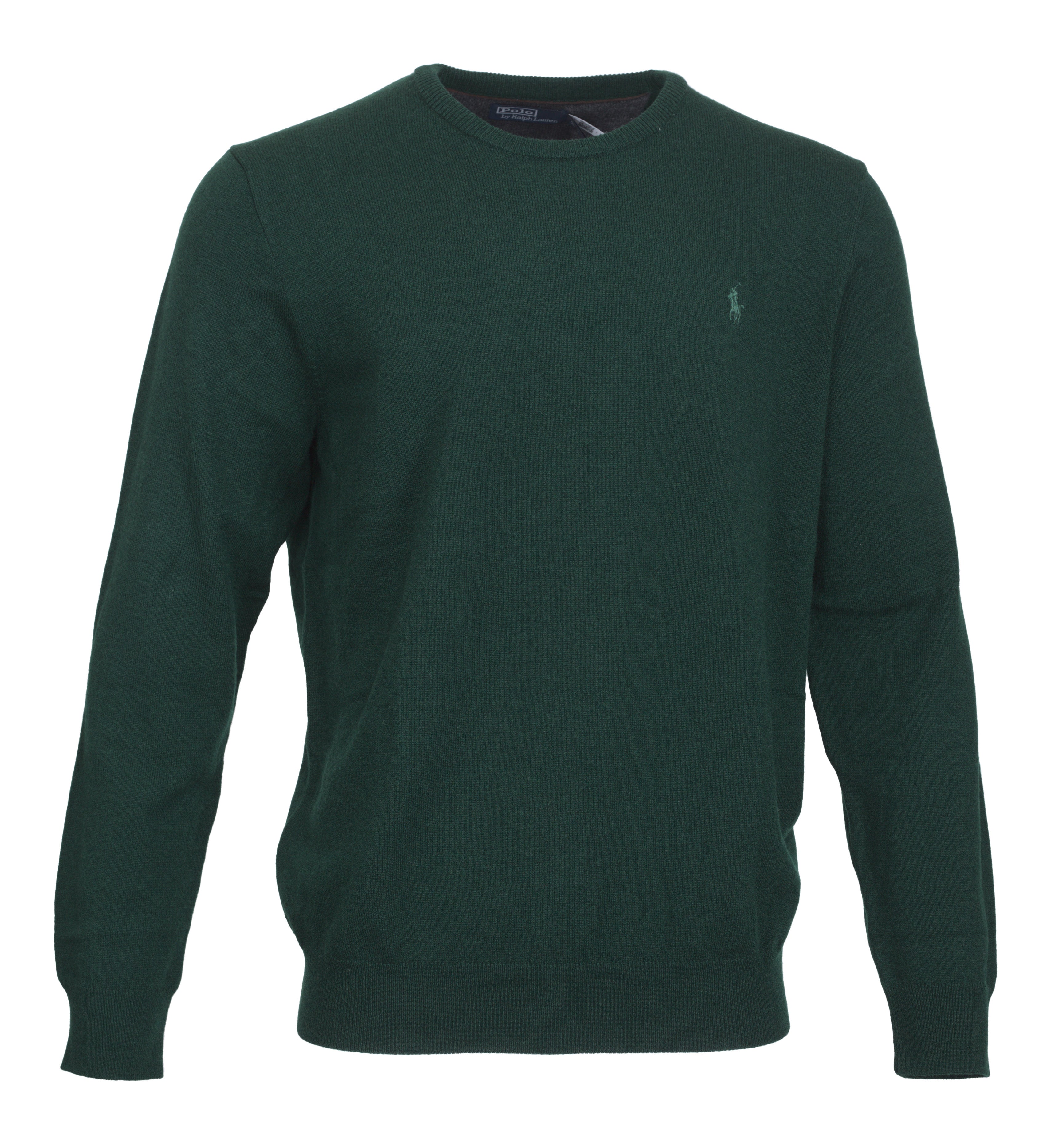 Pullover, Rundhals, Gerippt am Ausschnitt, Saum und Ärmelenden, Label-Symbol auf der Brust FarbegrünMaterial100 % WolleSuchfarbegrün