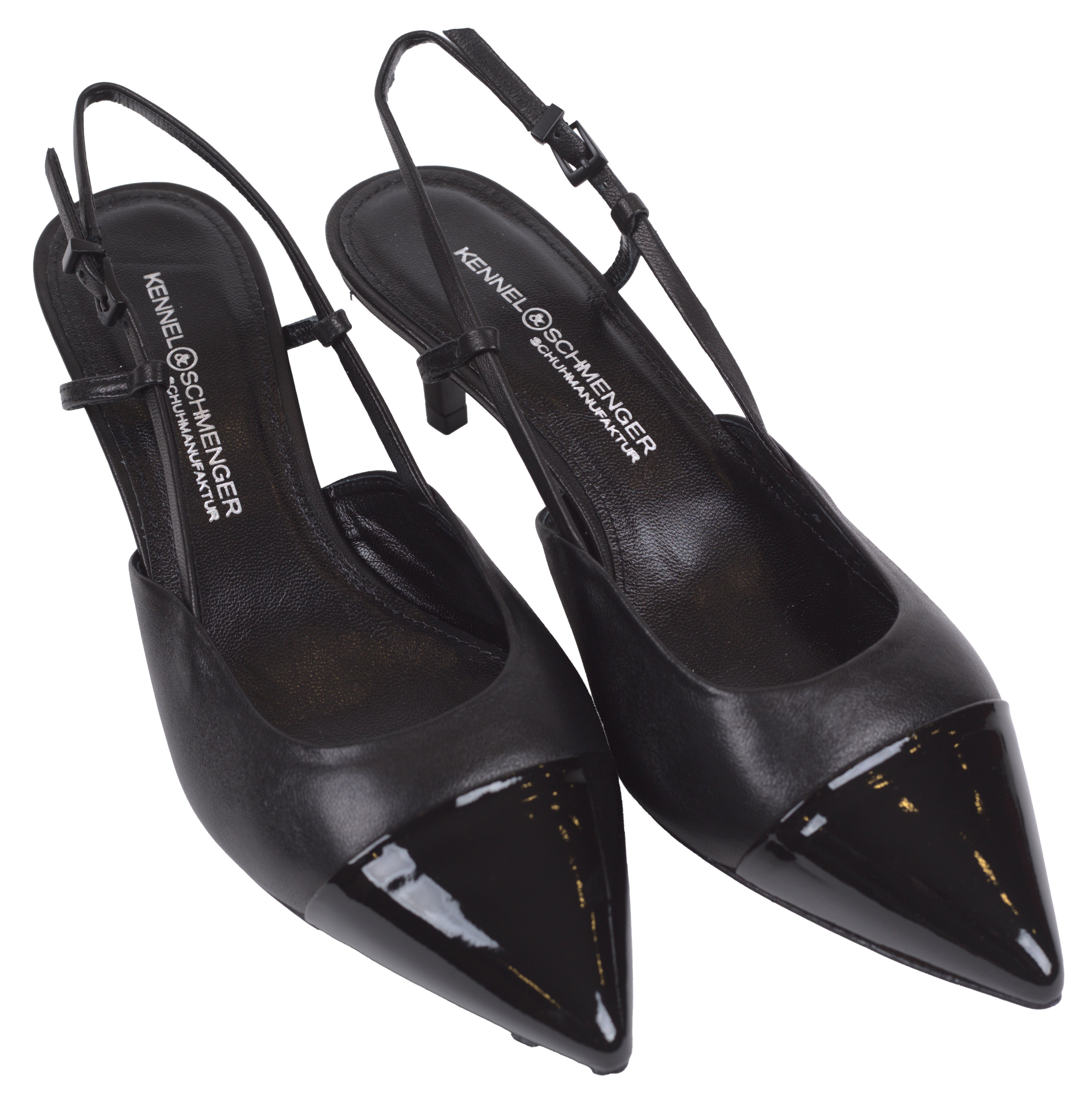 Slingpumps, Glattleder, mit Lackspitze, Schnalle am Fersenriemchen, Ledersohle, schwarz