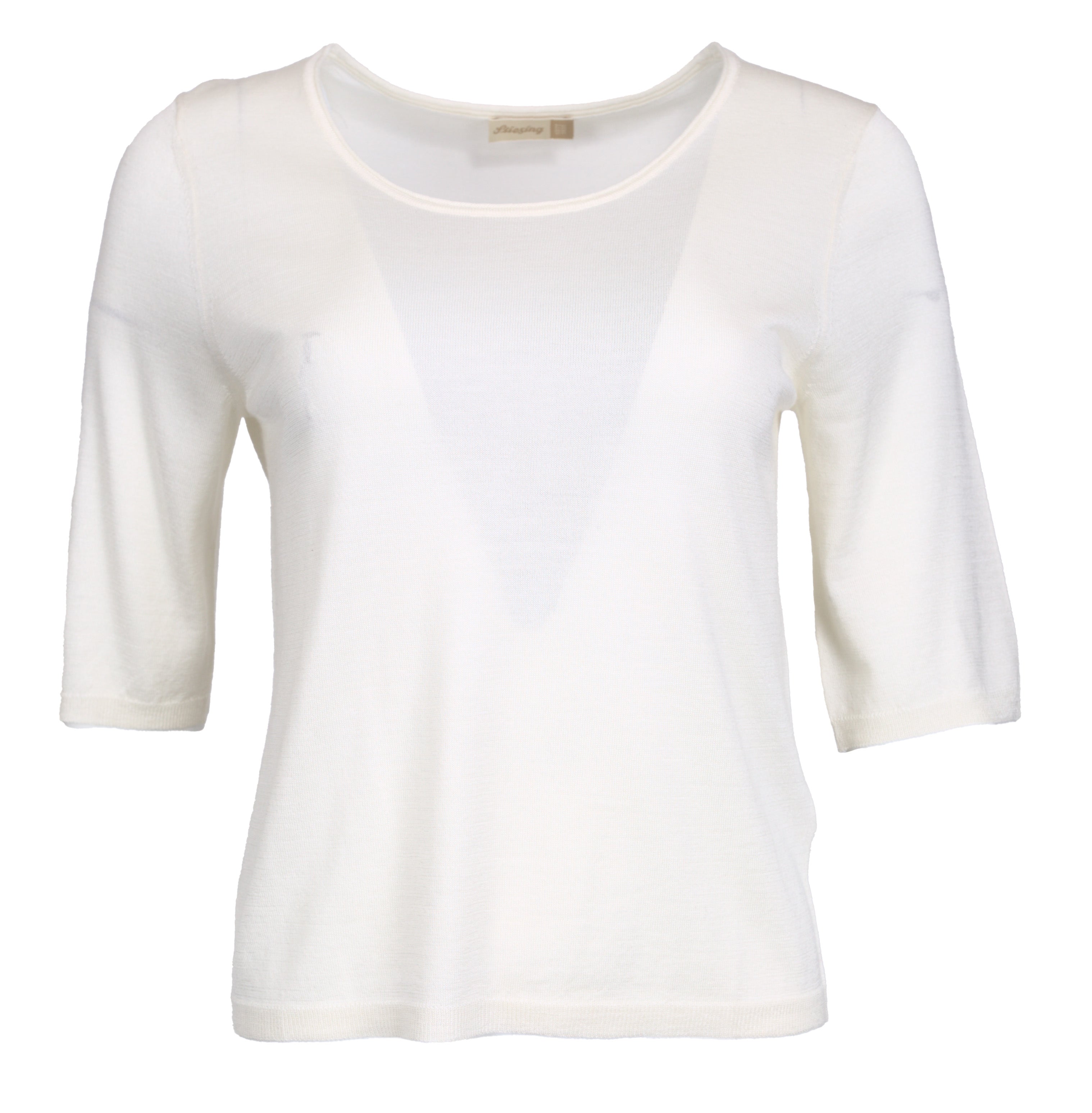 Pullover, 3/4 Arm, Gerippt am Saum und Ärmelenden, Rundhalsausschnitt FarbeweißMaterialSeide und CashmereSuchfarbeweiß