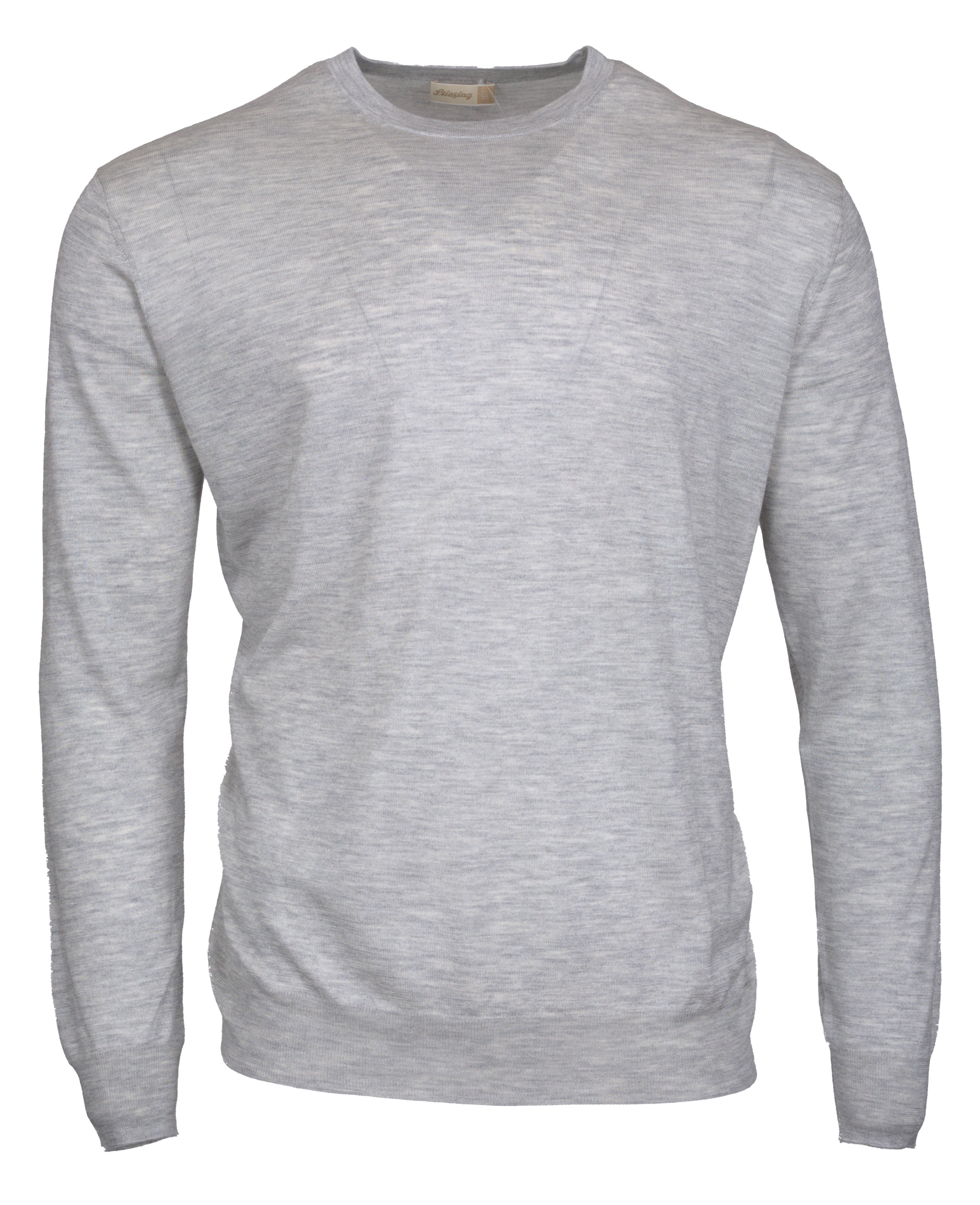 Dieser Rundhals-Pullover beeindruckt mit einem luxuriösen Materialmix aus 85 % Seide und 15 % Cashmere. Die extra dünne Verarbeitung und der lässige Schnitt verleihen ihm eine elegante Leichtigkeit, während das silbergraue Design zeitlose Raffinesse ausstrahlt. Ein perfektes Zusammenspiel von Komfort und Stil.