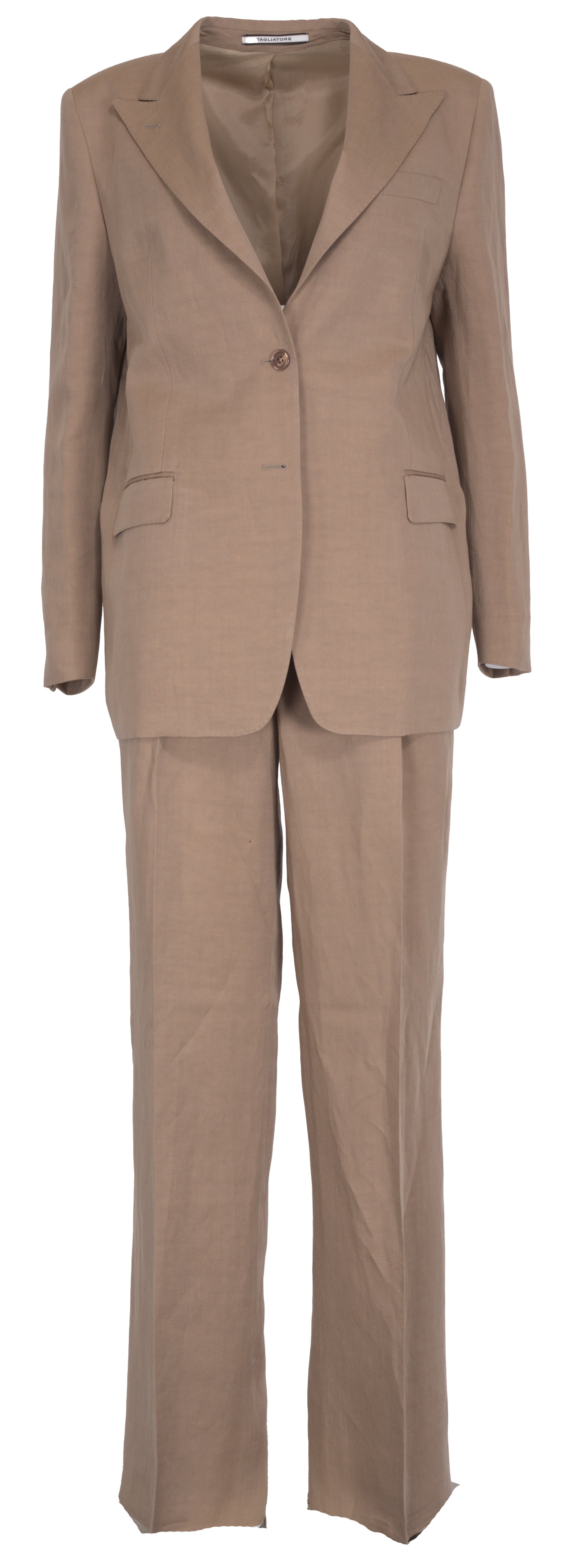 Hosenanzug, oversized Blazer, zwei Knopf, zwei Pattentaschen, Rückenschlitz, Pallazo-Hose mit zwei Bundfalten, Leinen/Lyocell, beige