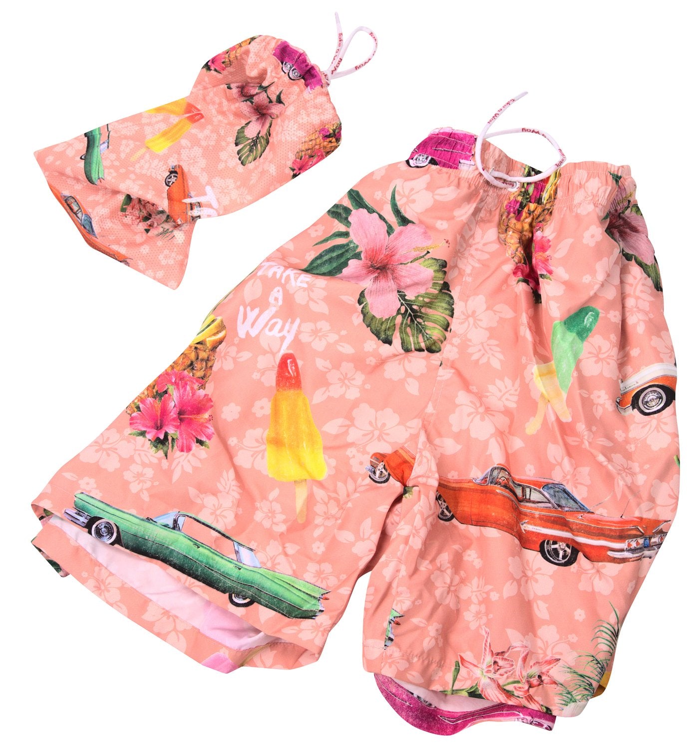 Die Badeshorts von Take Away kombinieren Komfort und Stil für entspannte Tage am Strand oder Pool. Der elastische Bund mit Kordelzug sorgt für eine flexible Passform, während der coole Print der Shorts eine frische, moderne Note verleiht. Mit praktischen seitlichen Taschen ausgestattet, bietet sie Platz für kleine Essentials. Ein zusätzlicher Schutzbeutel ist ebenfalls enthalten, ideal für den sicheren Transport und die Aufbewahrung der Shorts. Diese Badeshorts sind die perfekte Wahl für modebewusste Sonnenanbeter!