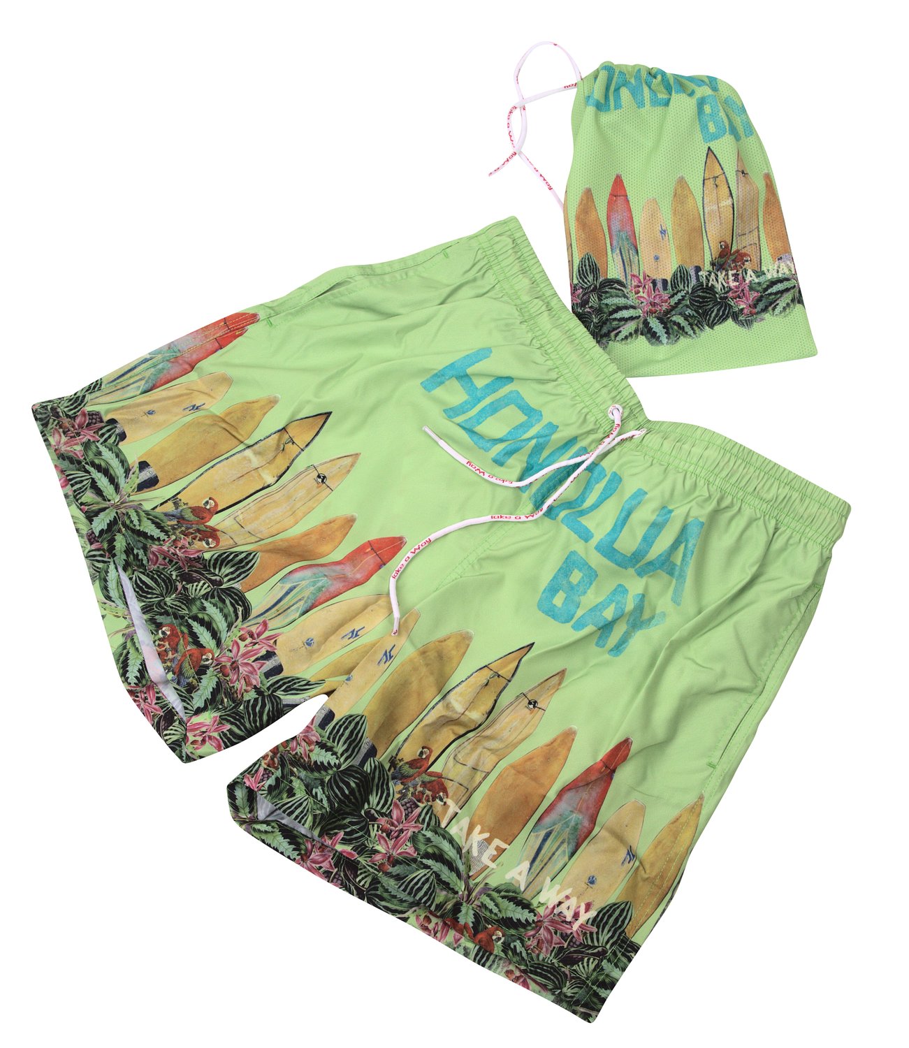 Badeshorts, Elastischer Bund mit Kordelzug, Print-Druck, Zusätzlicher Schutzbeutel, Seitliche Taschen