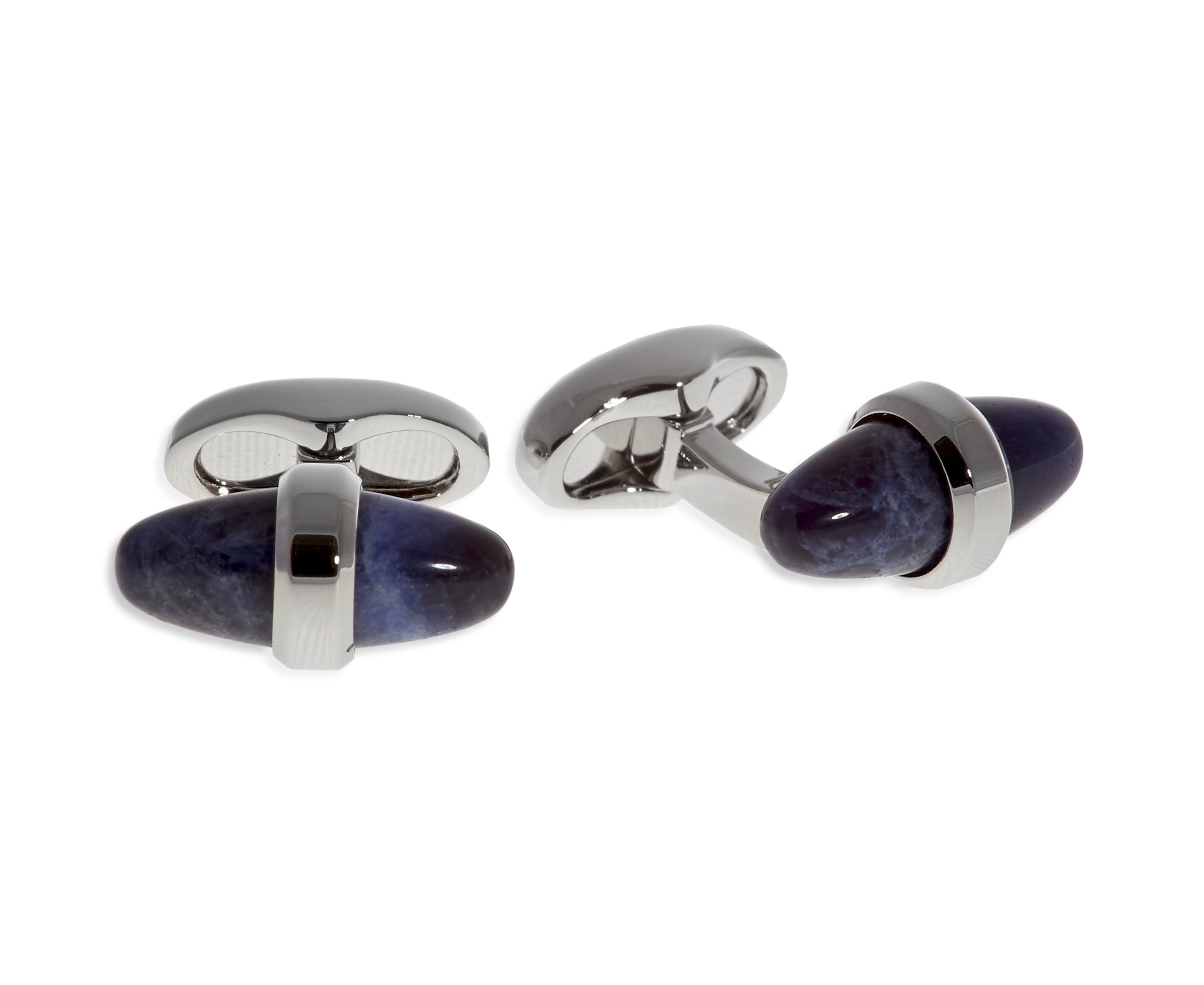 Die Sleek Bullet Manschettenknöpfe mit Sodalith vereinen elegantes Design mit hochwertiger Verarbeitung. Die charakteristische Bullet-Form steht für moderne Raffinesse, während der tiefblaue, natürlich gemaserte Sodalith dem Accessoire eine individuelle Note verleiht.