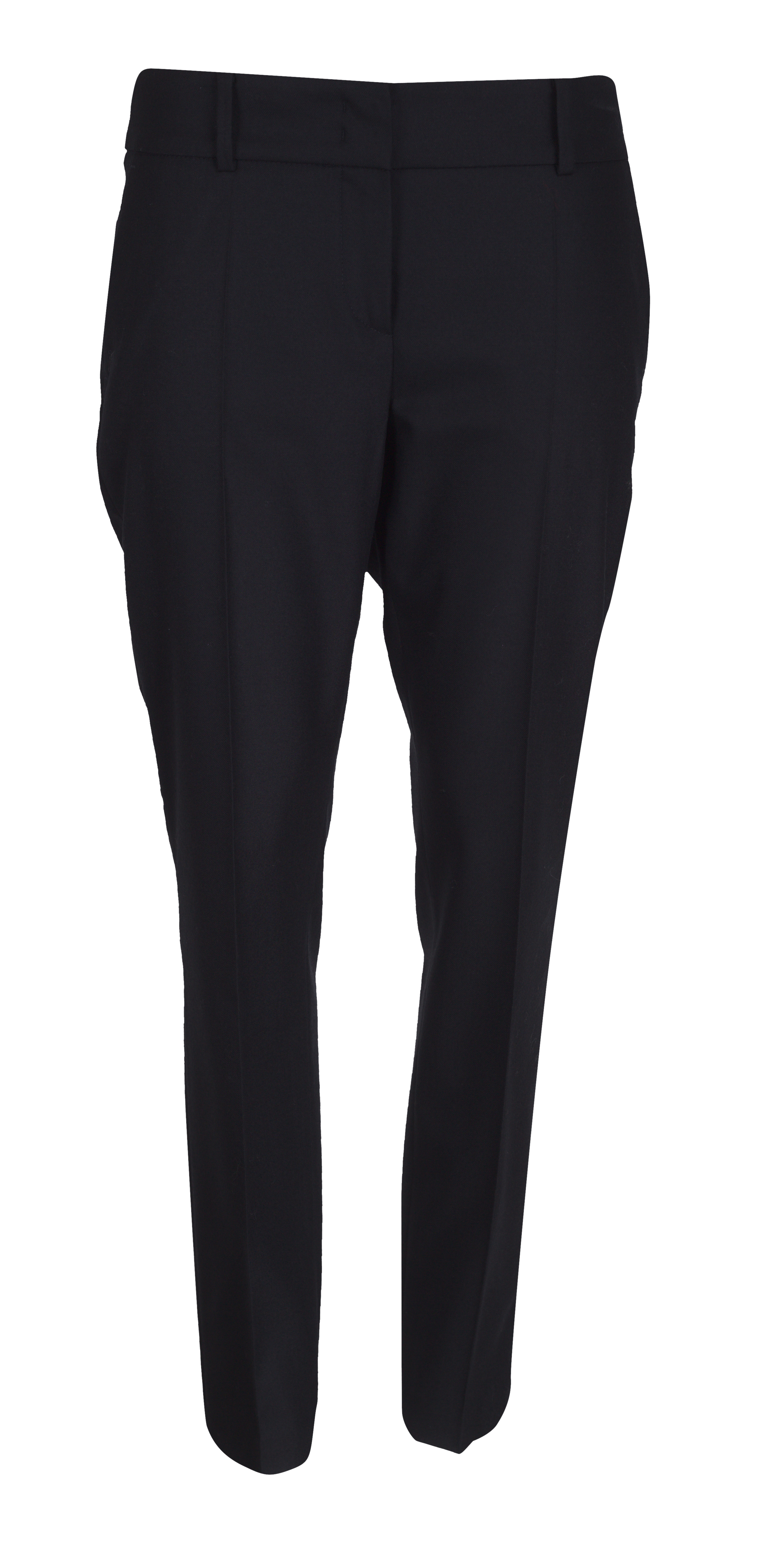 Hose, Angesetzter Bund mit fünf Schlaufen, Steck-, Knopf- und Reißverschluss, zwei seitliche Eingriffstaschen, zwei paspelierte Patten-Gesäßtaschen