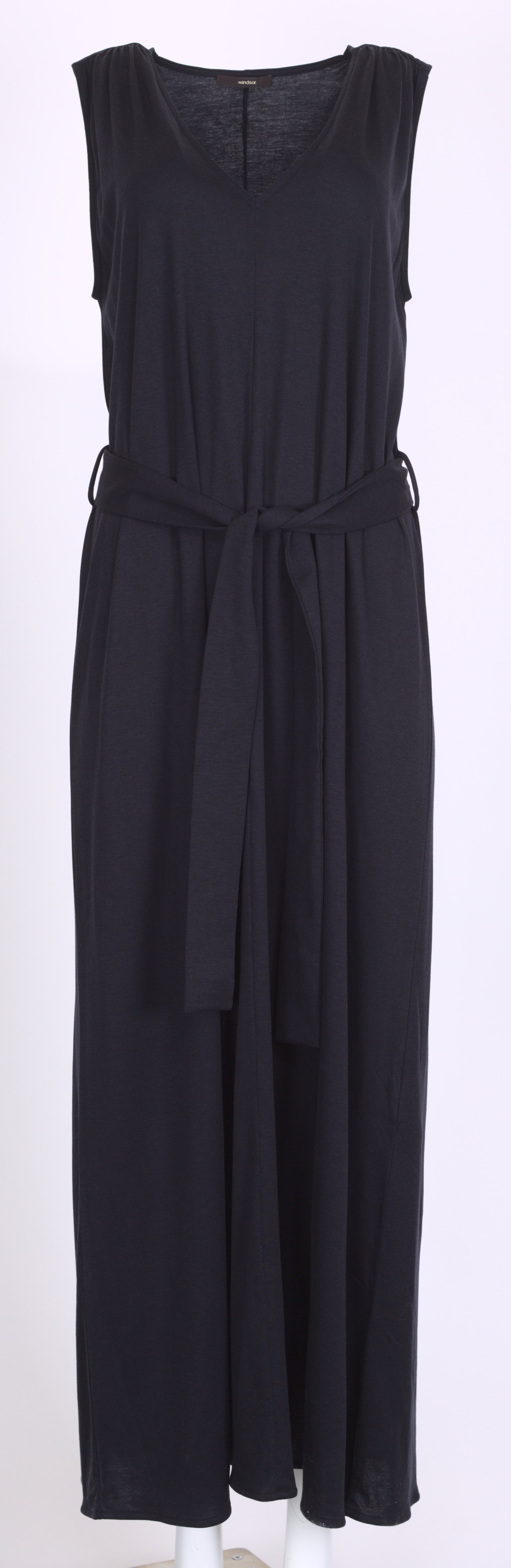 ärmelloses Jerseykleid, V-Ausschnitt, Gürtel, Baumwolle/Lyocell , marine
